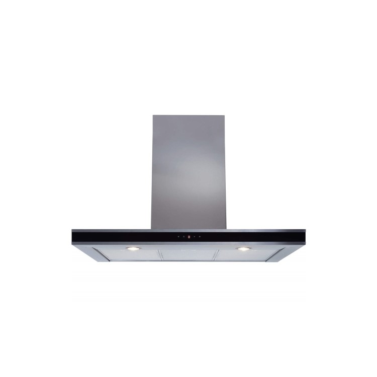 The CDA EVP91SS is a 90cm wide shelf-style chimney hood finished in stainless steel with a sexy glass feature across the front.