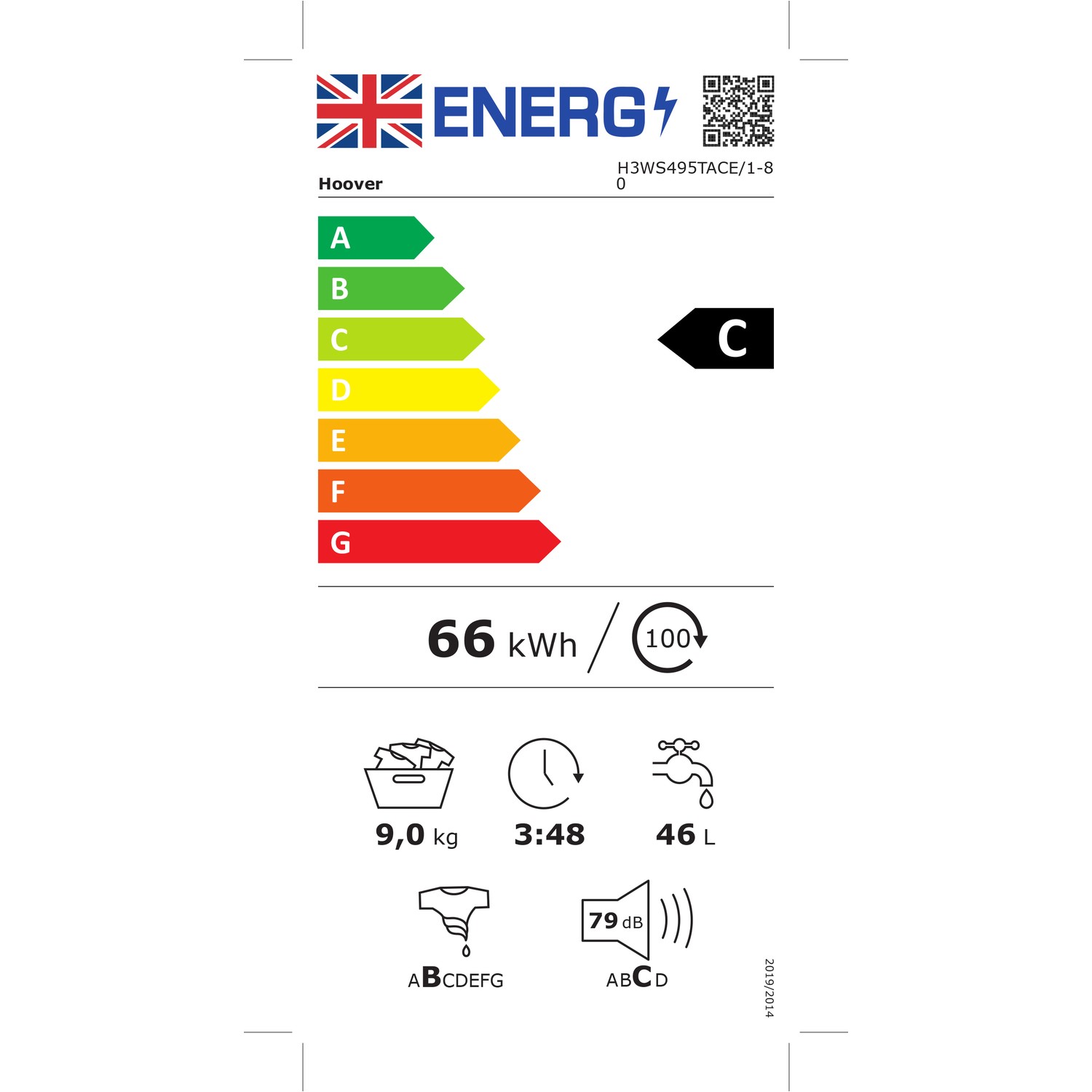 This Hoover washing machine from the H-Wash 300 range comes with a 9kg load capacity and a 1400 spin speed. There are 16 wash cycles to choose from, with 4 cycles below 60 minutes, including a 14-minute quick wash, as well as the All in One 59 cycle, which allows you to wash a full load in under an hour. In addition, the complete set off care cycles looks after your clothes, while ensuring they get the best possible wash. KG mode weighs the load during the first four minutes and adjusts the length of the programme and the water consumption accordingly. This machine also comes with the option to delay the cycle start time for up to 24 hours. Variable spin and temperature settings allow you to adjust the spin speed and temperature on all cycles to suit the load, and the stain level button allows you to choose the level of wash intensity depending on how soiled the items are. The steam function can be added to some cycles, relaxing the creases and the folds in your items, making ironing easier. Fitted with WiFi technology, you can connect your smartphone to the machine via the Hoover app, giving you the ability to download additional programmes and run diagnostic checks on your machine.