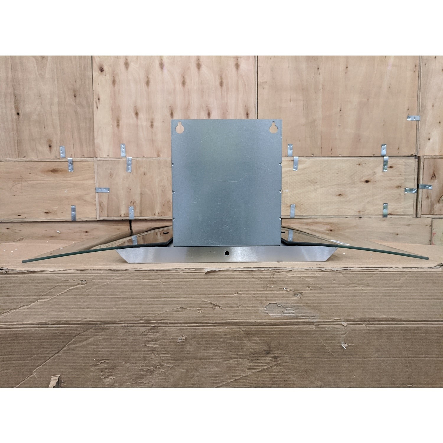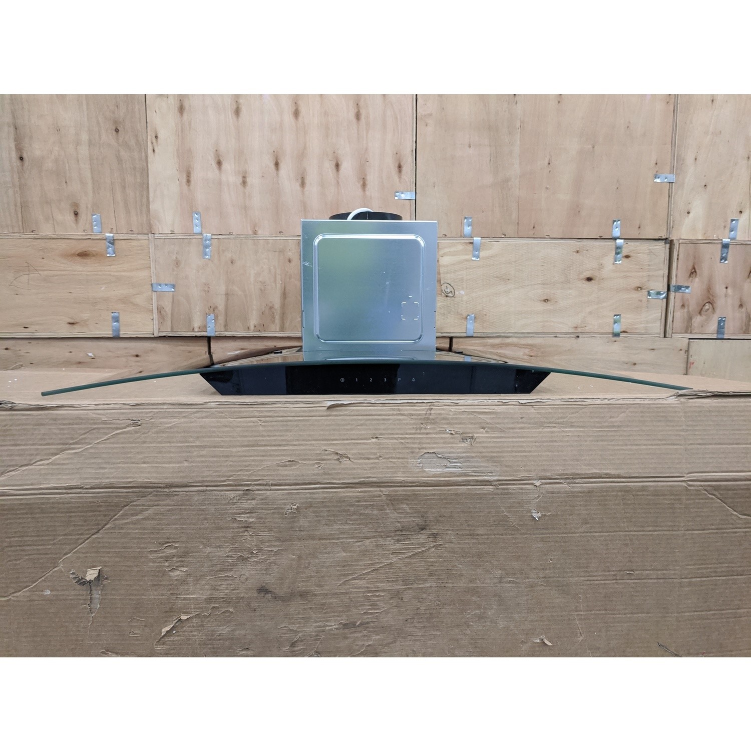 The curved glass canopy hood combines two design styles: transparent glass as well as the classic box hood design.