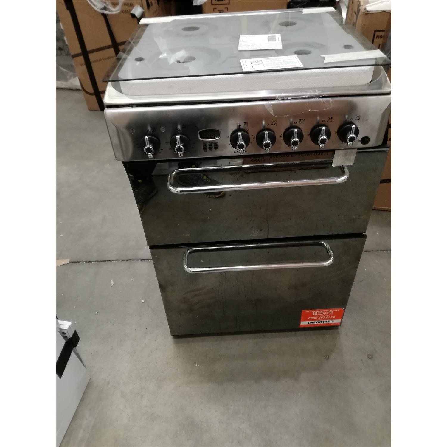 - Double glazed oven doors lock in heat