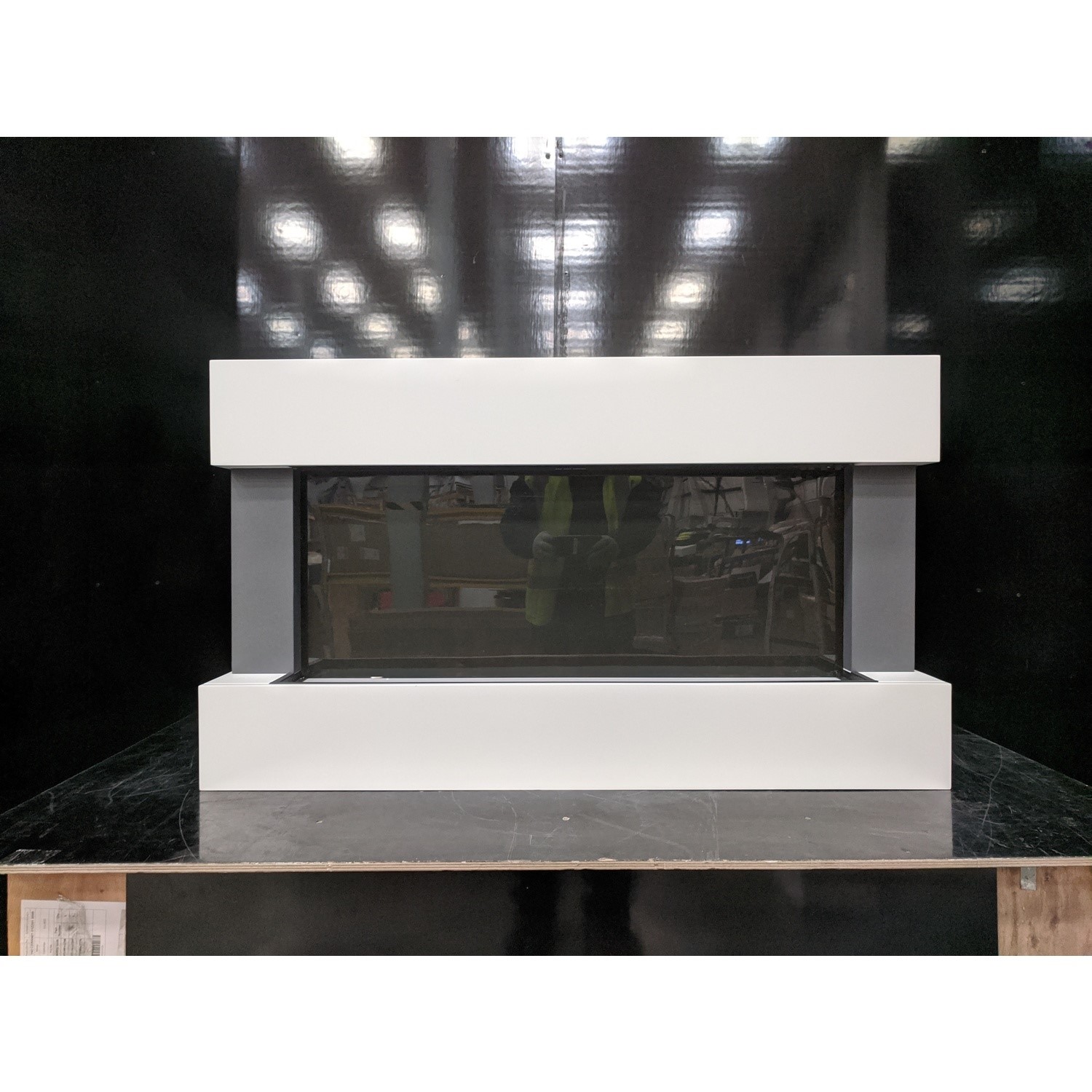 The AmberGlo White Wall Mounted Electric Fireplace Suite have some minor cosmetic damage. It has been repaired, found the source of the clicking was the metal frame getting caught inside the unit. This will not stop the product from functioning. Please see the images for more information.