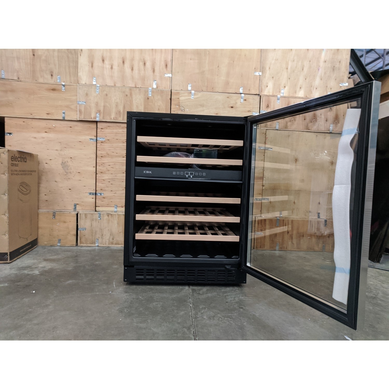 The FWC604BL is a freestanding, under counter wine cooler with huge capability within a stylish exterior. It comes with wooden slide out shelves, with the capacity to hold 46 bottles across two temperature controlled zones. Features include: electronic temperature control, a UV protected smoked toughened glass door, humidifier and a temperature alarm to maintain optimum conditions for the safe storage of your wine; this is the perfect addition to any functional kitchen design.
