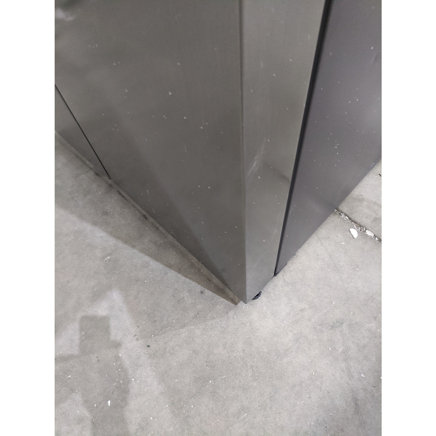 This is a graded product. A3 products have moderate exterior damage . All products are tested and are in good working order. Both doors dented, side scratched, back panel dented on bottom edge, doors out of sync slightly.