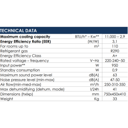 - Powerful cooling (2.9kW)