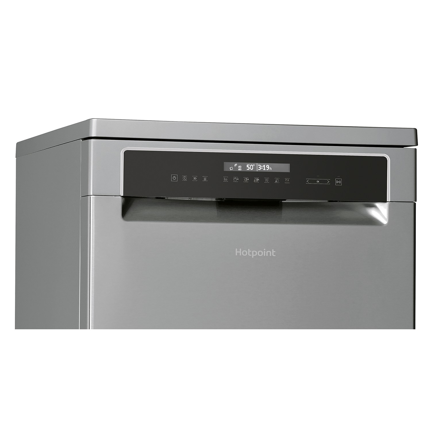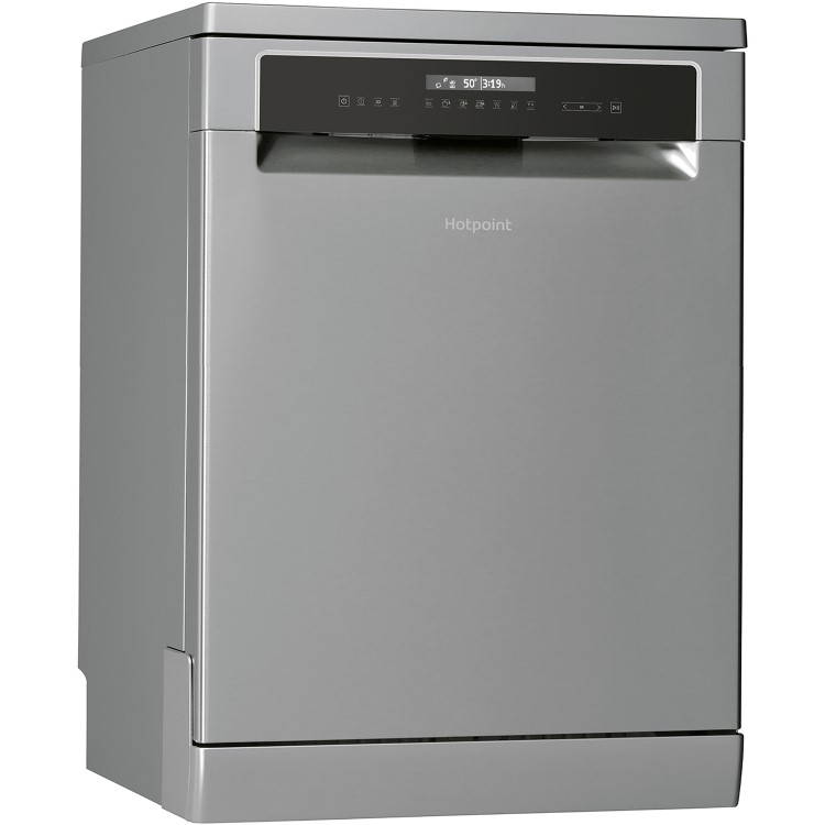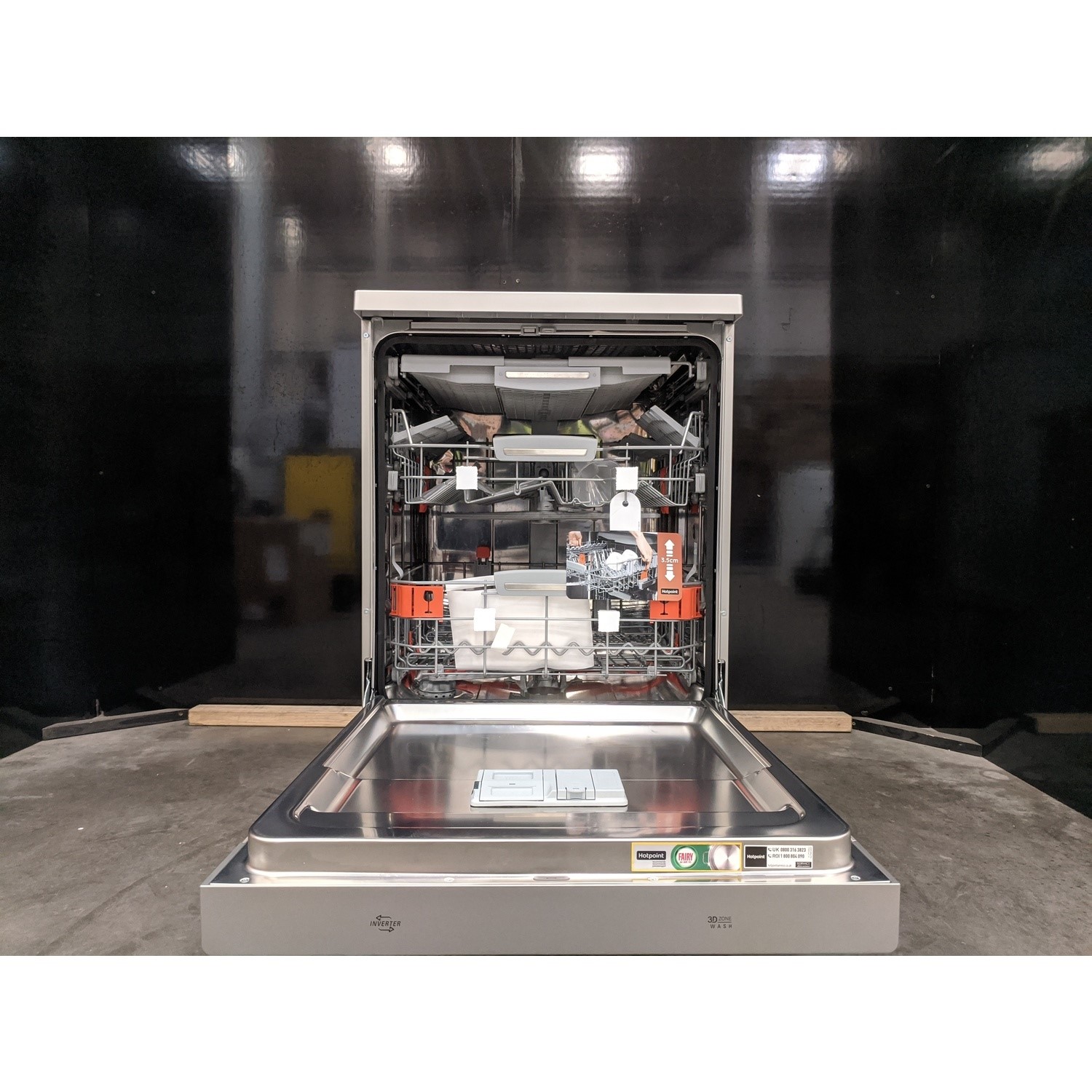 This Hotpoint Dishwasher features a full size with an outstanding number of available place settings. Exceptional, reduced water consumption. Stainless Steel Inox colour. Innovative technology ensuring extra silent performance, for a very quiet appliance. 3D Zone Wash, Inverter Motor, Mira Display (TFT), Glass Care.