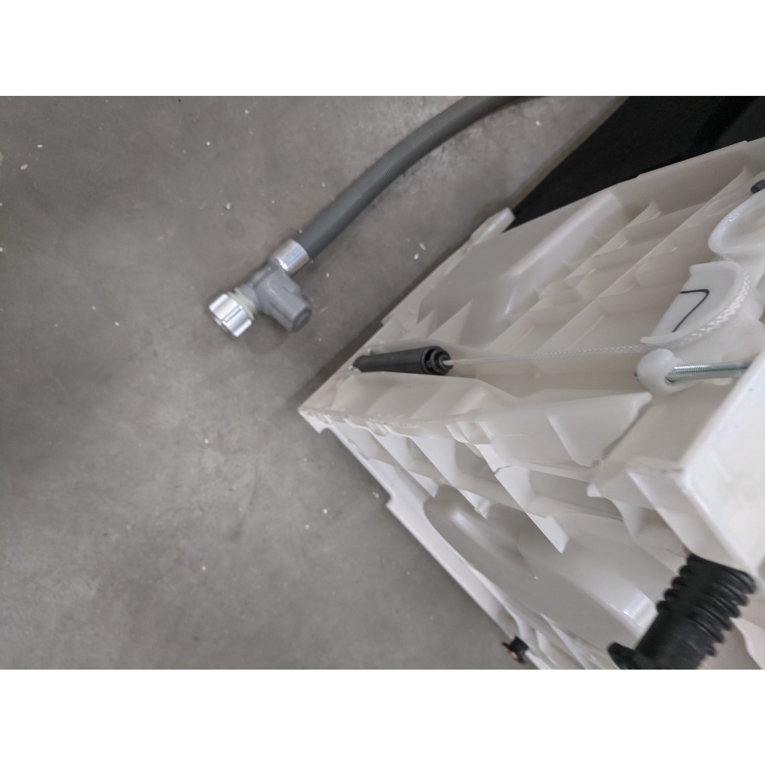 Includes a fill hose, which will be packaged behind or inside the machine.