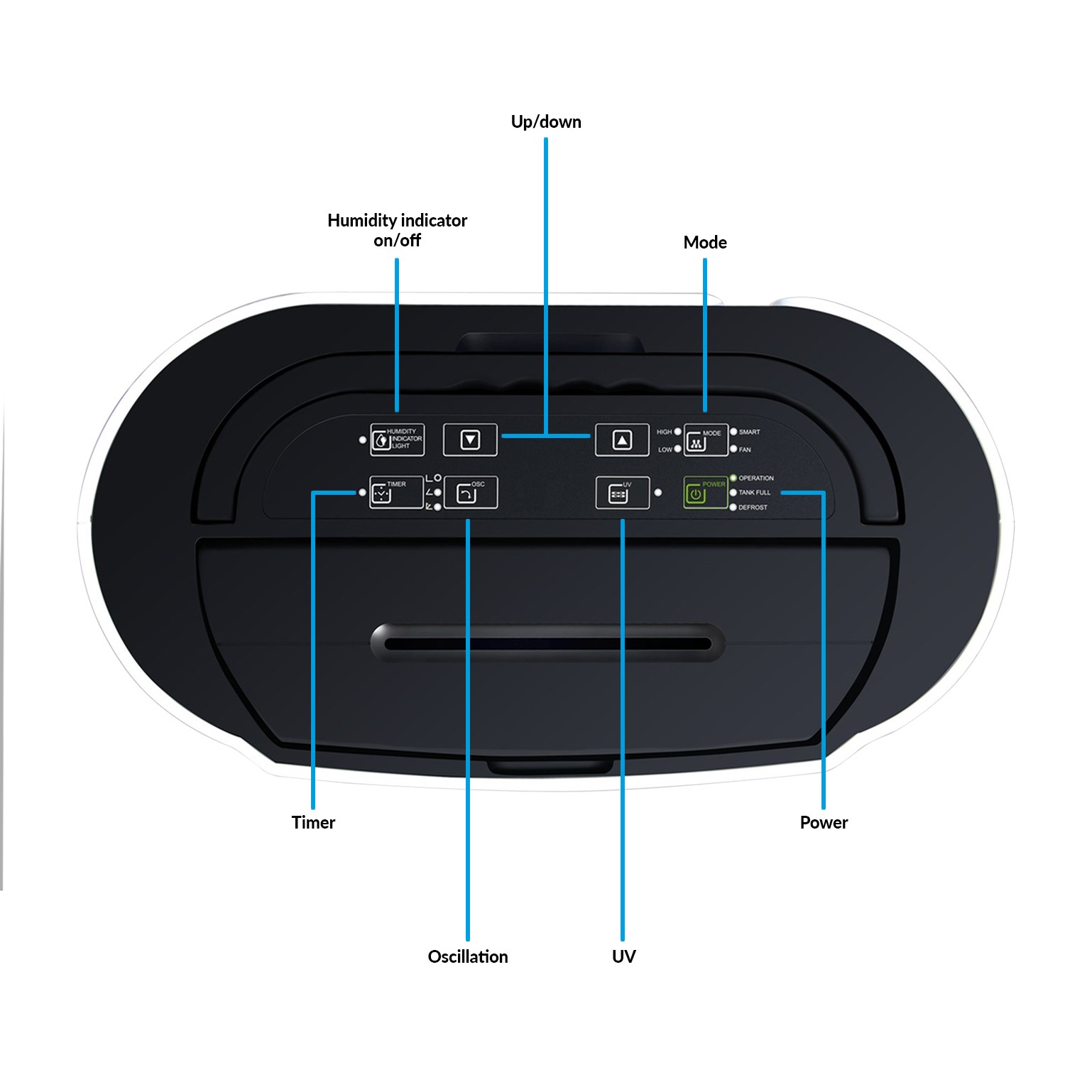 - Accurate adjustable humidistat allowing settings from 35 to 80% relative humidity in 5% relative humidity steps