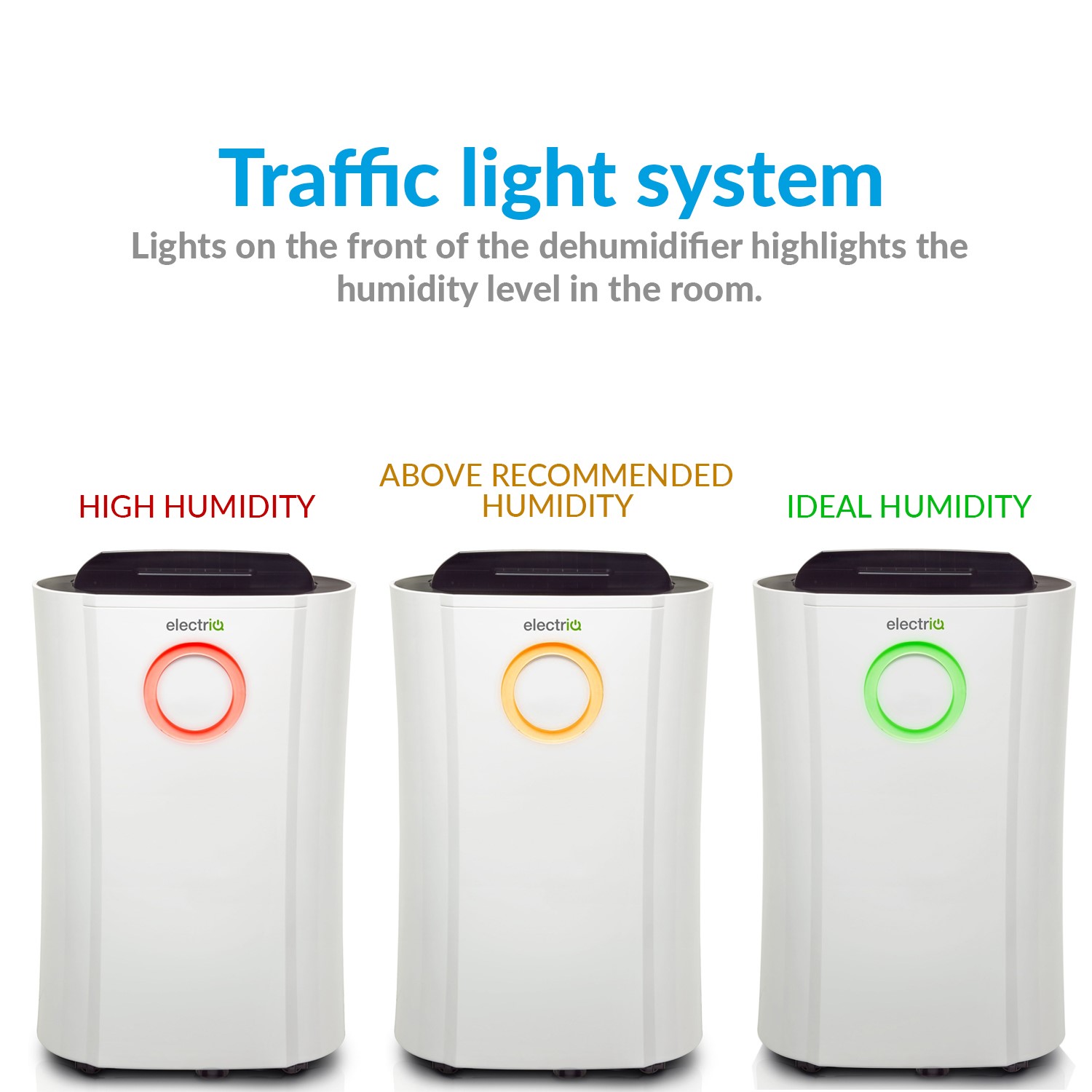 - Digital humidistat with backlight LCD display showing current room humidity also colour led light green, orange and red for quick and effortless humidity level check