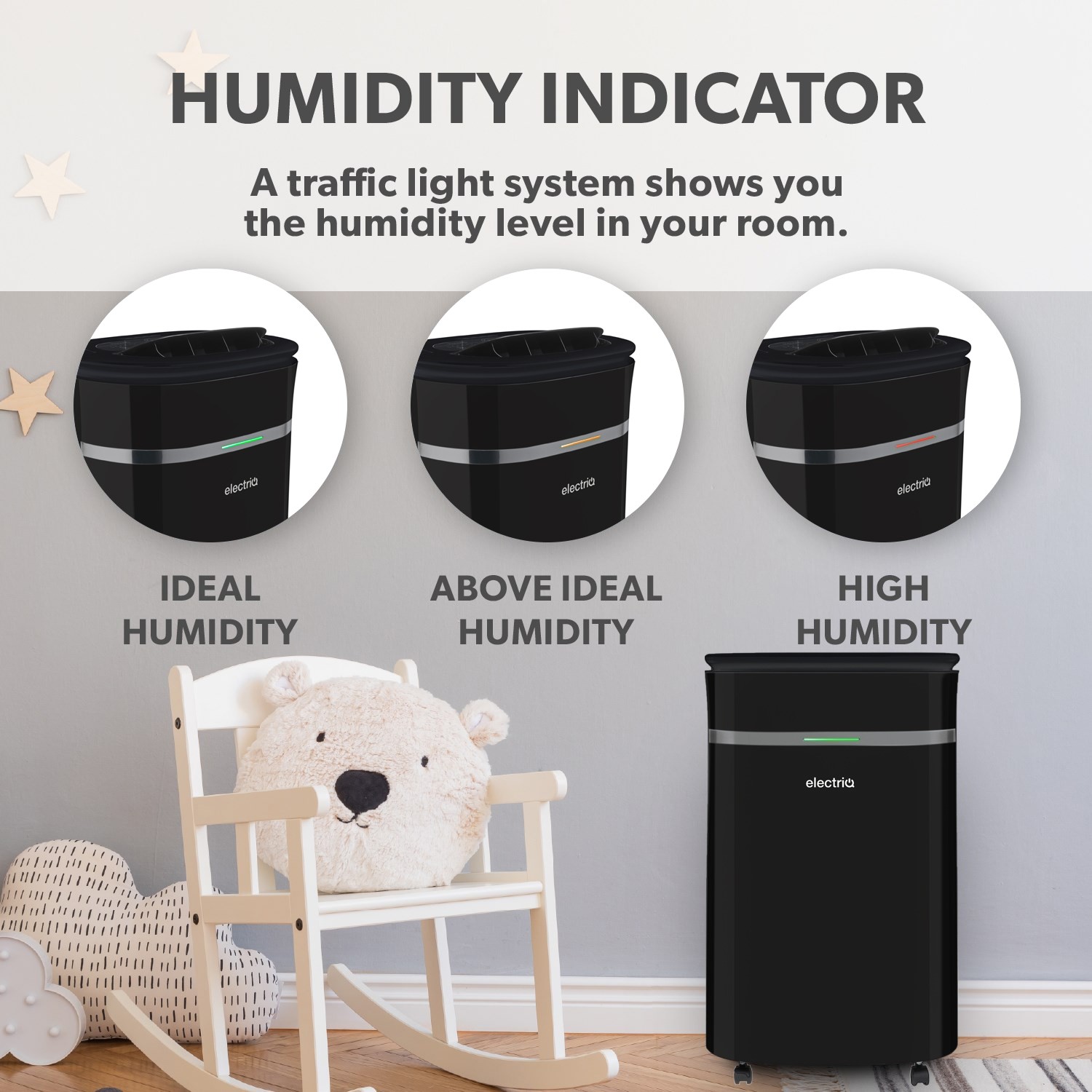 - Digital humidistat with LCD traffic light showing current room humidity level