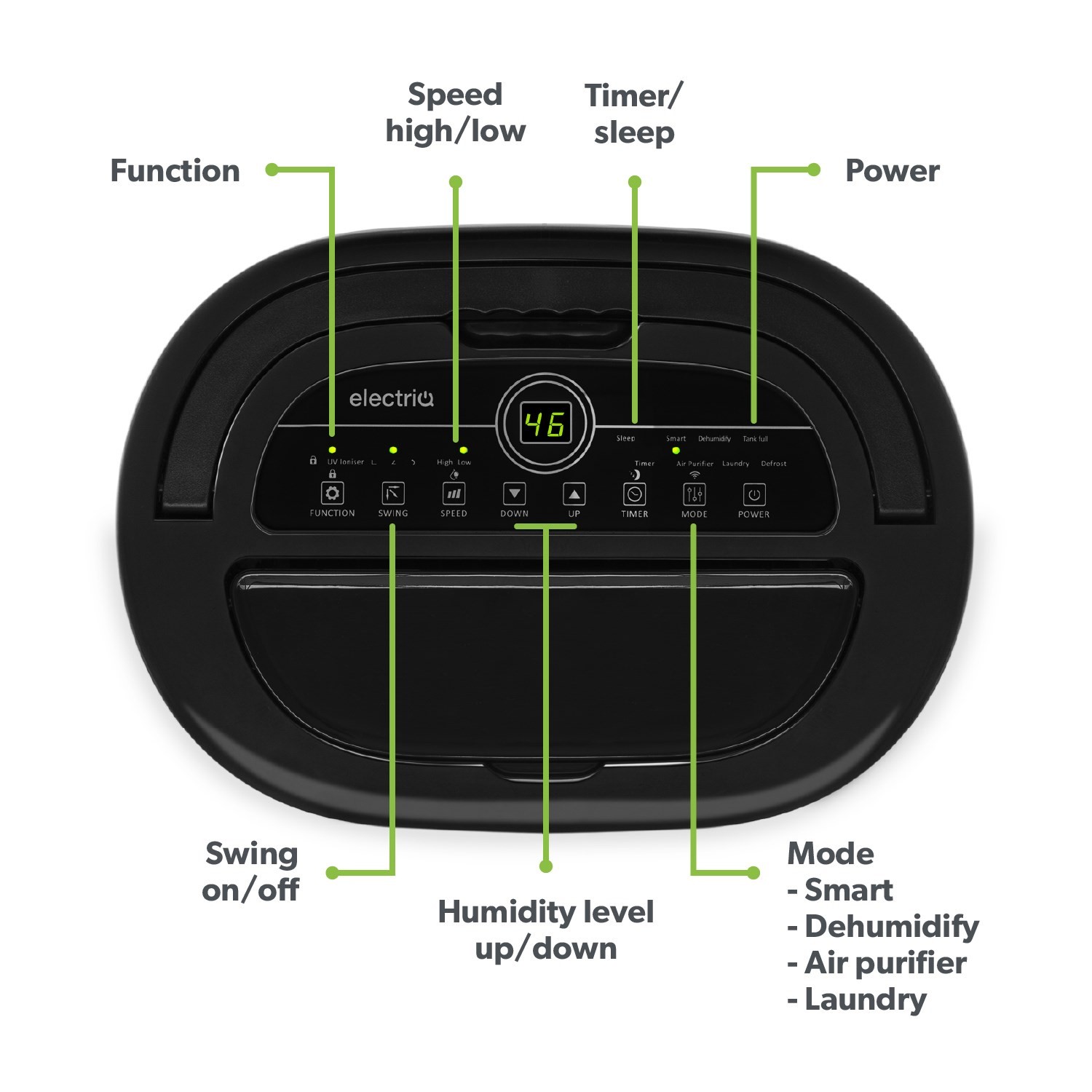 - Advanced air purifier function with UV sterilisation