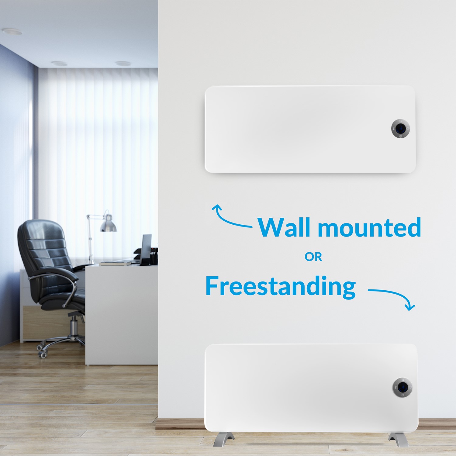 This designer panel heater can be both wall-mounted or portable by using the supplied stand. Its IP24 water-resistant allows it to be used in many spaces including bathrooms. There are no moving parts or pipework required, just an electricity supply, making it reliable and less likely to break. What's really impressive though is that you can take control of all the heater functions from anywhere, at any time, using your smartphone. Simply connect the heater to your home WiFi, download the app on your smartphone and away you go. This has been implemented for your ease, convenience and to help you be more energy-efficient. Heat up your room minutes before you arrive home! The advanced energy efficient design, weekly timer and precise digital controls have all been put in place to provide more efficiency and help you save money on those energy bills.
