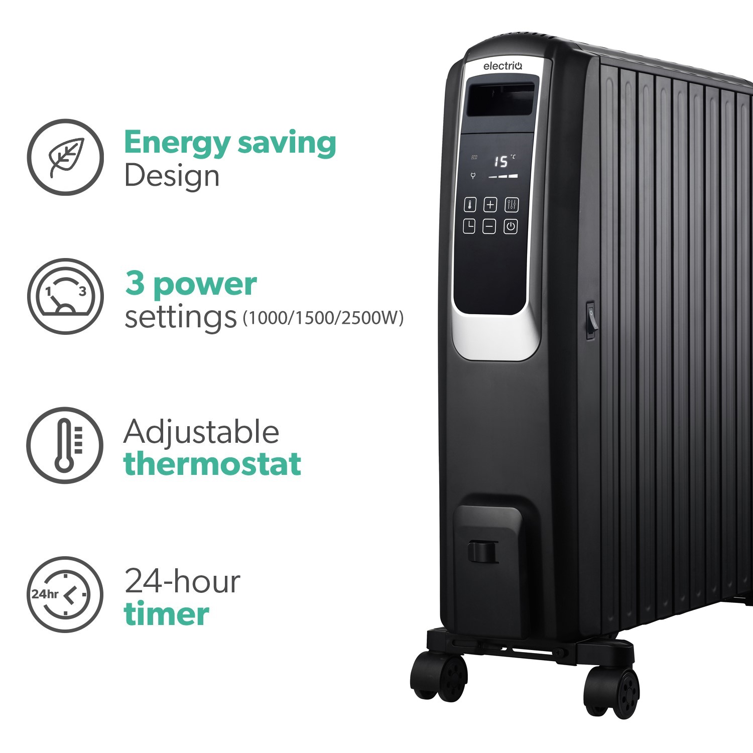 This impressive oil-filled heater is perfect for large spaces such as your bedroom or living room. Thanks to a new heat cell design, its smooth and sleek appearance ensures faster radiant surface heating, resulting in quick and evenly spread heat circulation. Making it much more efficient than the average oil-filled heater.