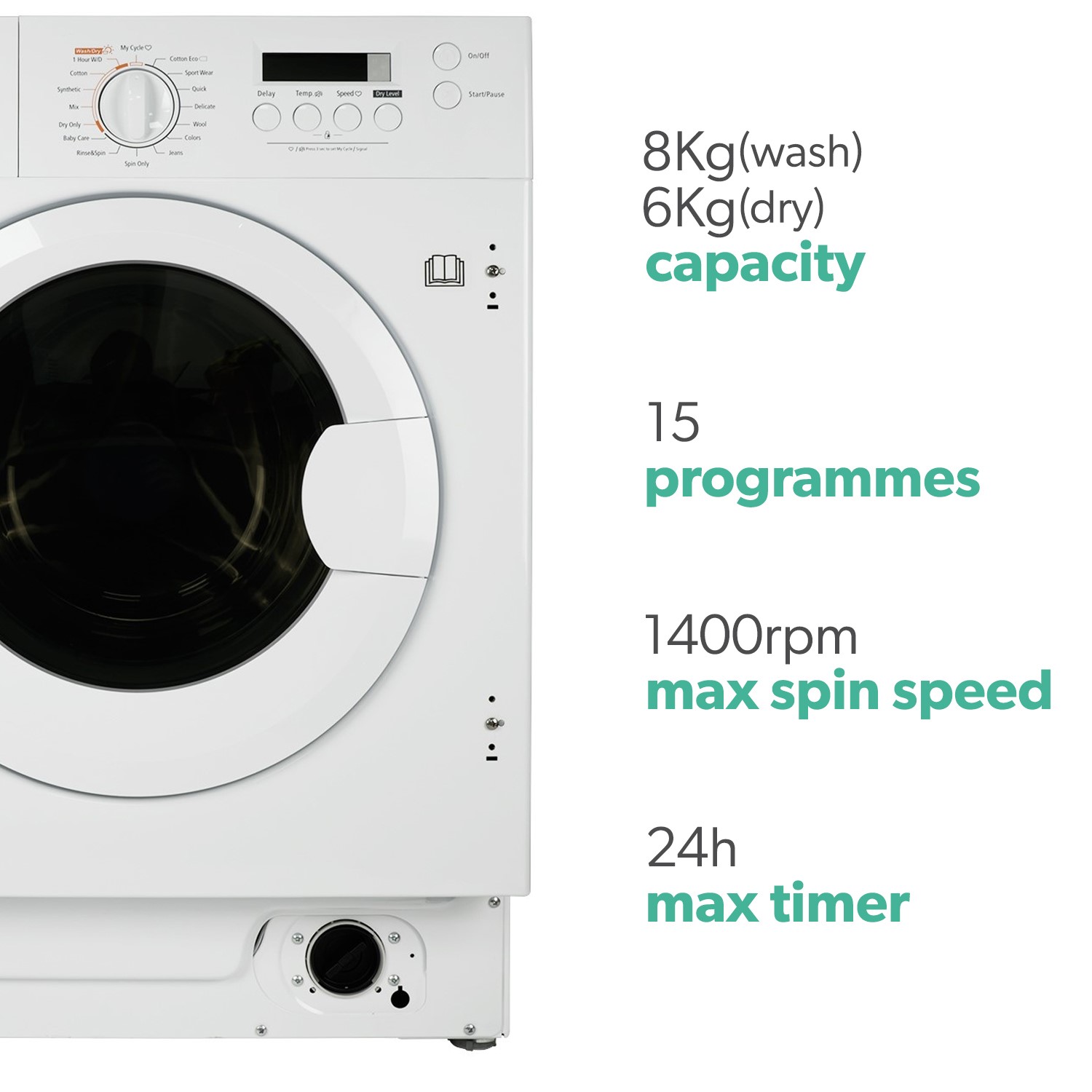 - Ideal for medium-sized homes and families, with an 8kg wash and 6kg dry load capacity