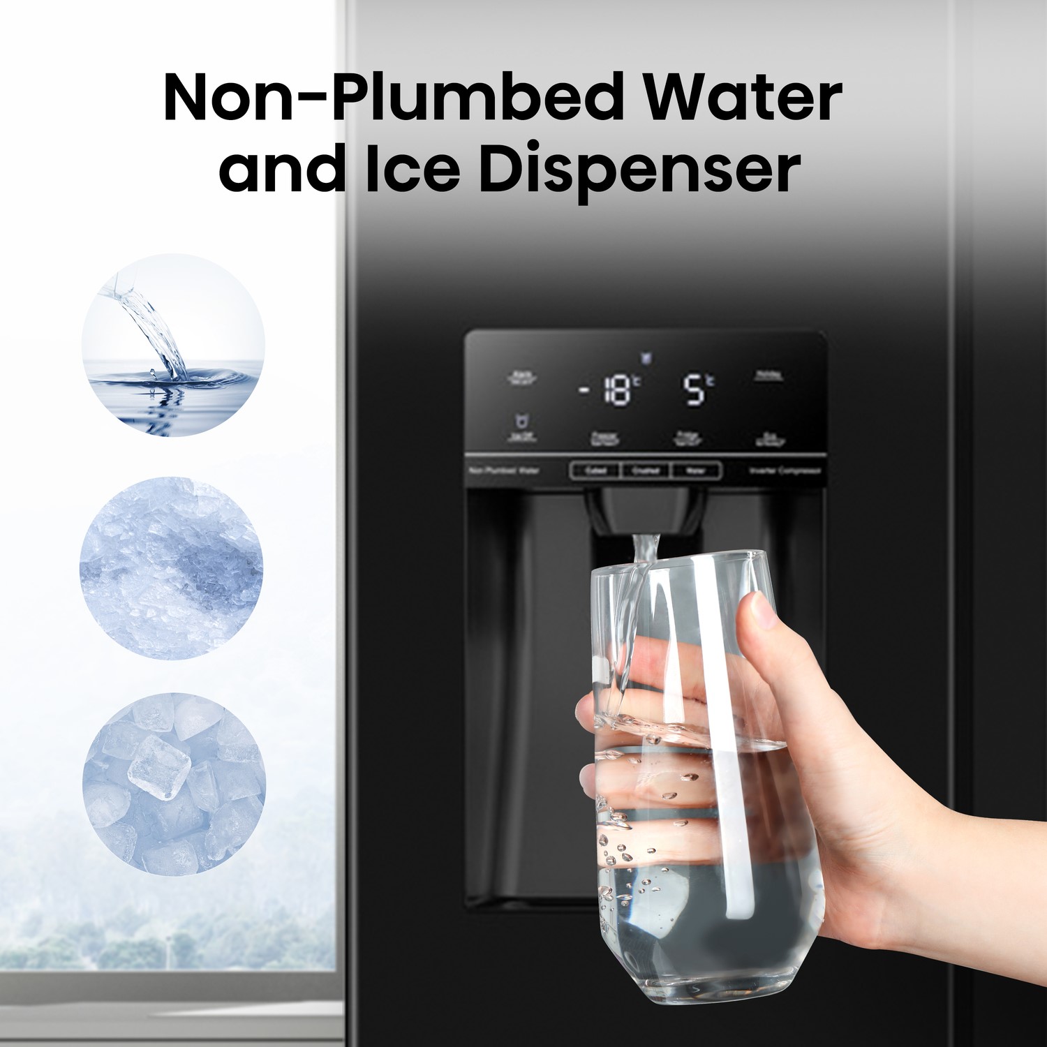 - Non-plumbed ice and water dispenser have a self-sufficient plumbing system, allowing it go anywhere in the kitchen