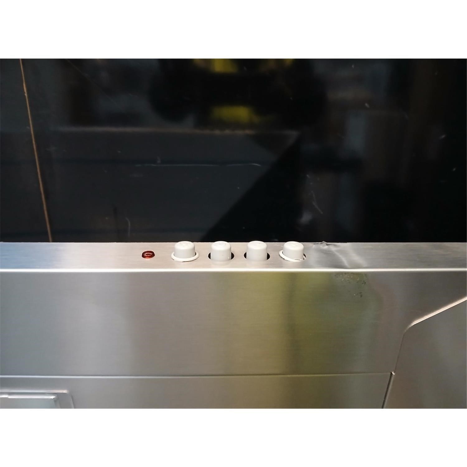 3 aluminium filters collect any grease and can be easily cleaned by hand with soapy water. This hood also features an easy to use button controls.