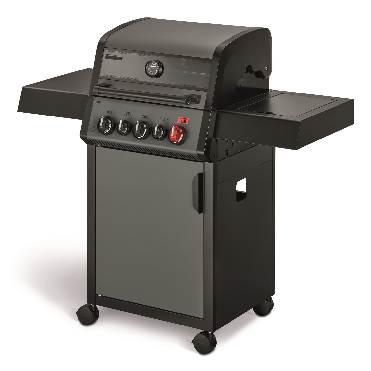 BARBECUING WITHOUT LIMITS: YOUR ALL-ROUND EQUIPMENT With the HYDE® series, you get everything you need for your next barbecue party. With the compact HYDE® 3, you are perfectly equipped for a cozy balcony evening. This barbecue brings equipment and power to any garden! With the 800 °C TURBO ZONE™ and the infrared mesh, you can sear your food in no time at all. The infrared baking burner ensures juicy, crispy food on the spit. The SWITCH GRID™ cast iron grid and the practical side burner give you the freedom to grill anything you want. The viewing window always gives you a perfect view of your food. The HYDE® series - for anyone who doesn't want to compromise when grilling and is looking for a full range of features.