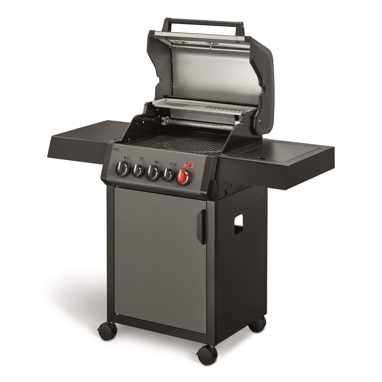 - 3 continuously adjustable stainless steel burners for powerful direct and indirect barbecuing / baking