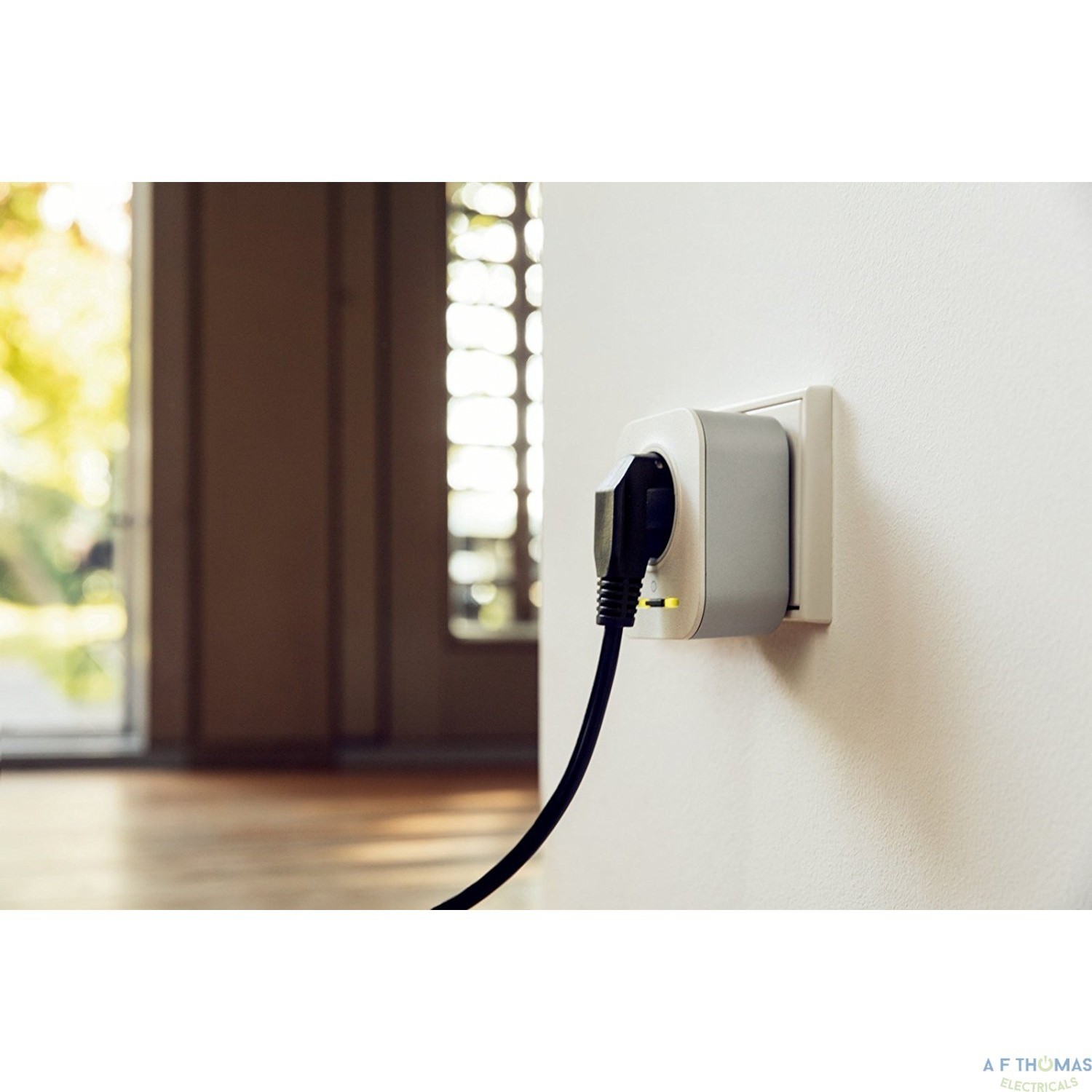 A intelligent socket instead of a conventional power connection: the Bosch Smart Home Plug equips practically all conventional electrical appliances with additional functions. Thanks to a programmable timer connected appliances are switched off and on automatically. So in future, your kitchen appliances will be a step ahead as you start the day: when you come into the kitchen, the coffee maker will already be preheated and ready to go. Adjust the start time as you like via the radio-controlled socket and select different times for the weekend - so you can sleep longer on Sunday and still enjoy your coffee as soon as you get up.