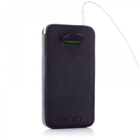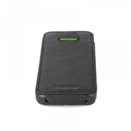 This smooth genuine leather case is custom-designed to safely protect your iPhone 4S/4. With a black velveteen lining, use the knomo-green pull tab at the back to gently lift your phone out. -Genuine leather exterior -Designed for iPhone 4S, Fits iPhone 4 and other similar-sized phones -Phone is cushioned inside velveteen lining -Easy access to screen-lock button and headphone jack -Allows iPhone to charge whilst being protected.