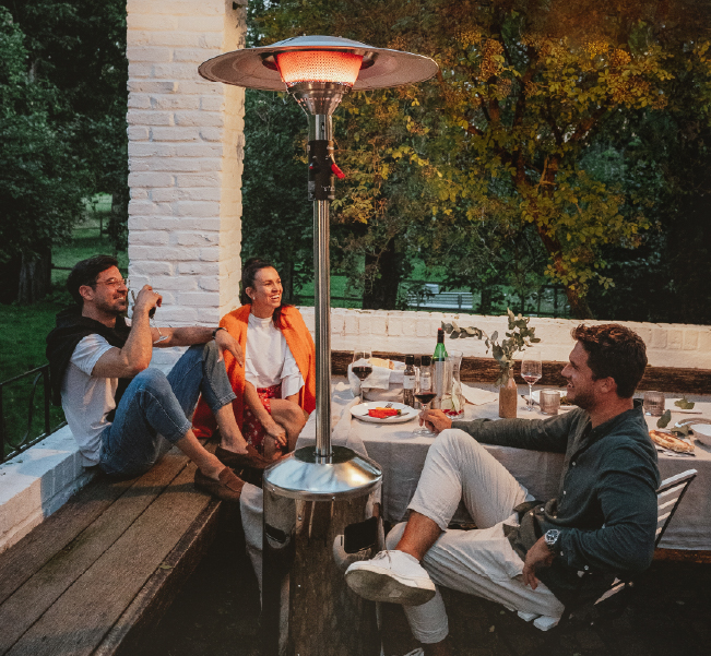 Infinitely variable heat control from 3.5kW to 8kW allows you to adjust the warmth to suit your outdoor setting.