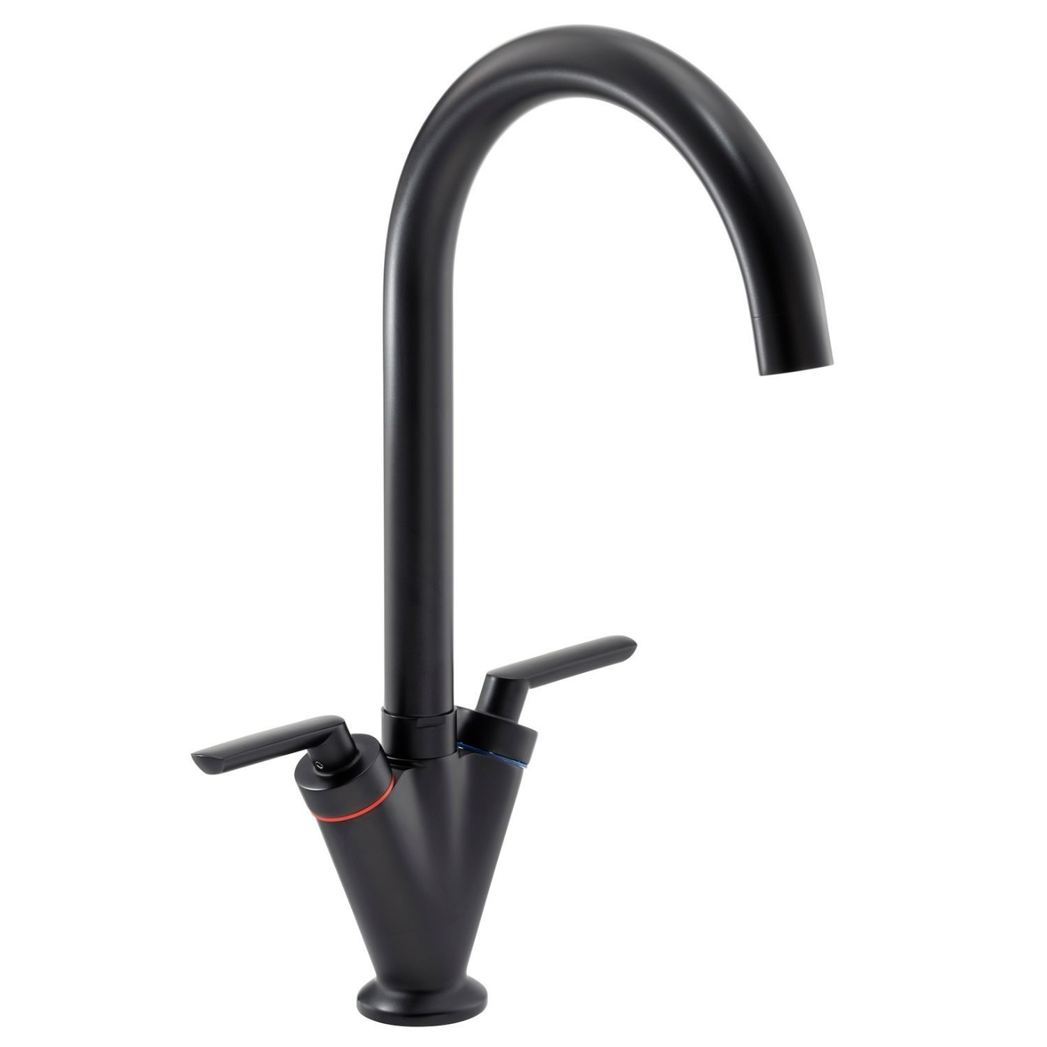 The Abode Volo Dual Lever Mixer Tap in Matt Black brings striking industrial design to the modern kitchen. With a swan neck spout and bold matt black finish, it blends minimalist style with practical performance. The dual lever 1/4 turn mechanism offers smooth, accurate control over water flow and temperature, while integrated 1/2" ceramic disc valves ensure long-lasting, drip-free operation. Designed for deck-mounted installation, it features a replaceable aerator for easy maintenance and is built from durable brass for strength and reliability.