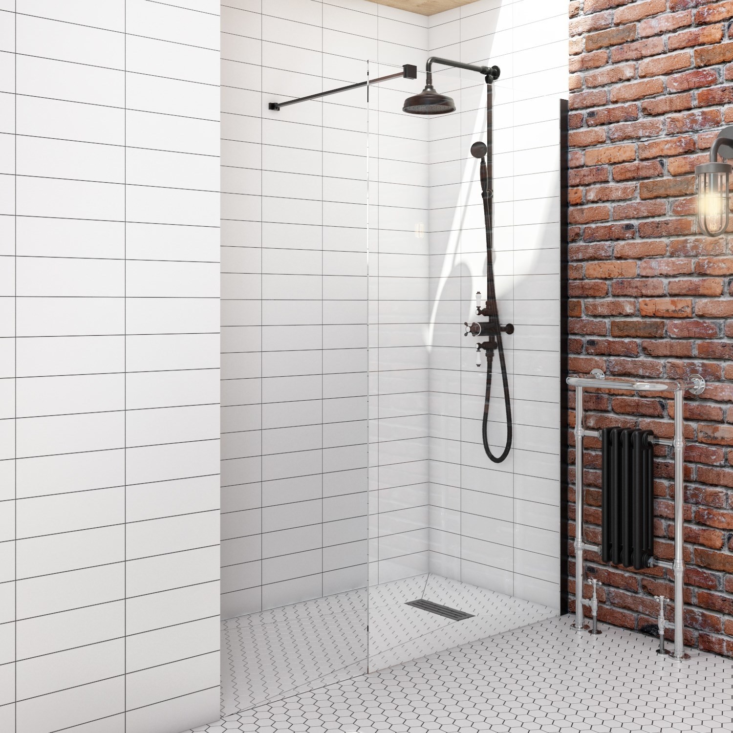 Note: A T-shape bracket (sold separately) can connect two wet room shower screens to create a minimal walk-in shower design.