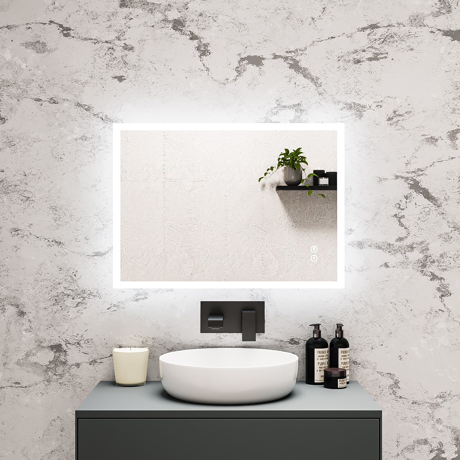 - Front-lit diffused LED edges to illuminate your space