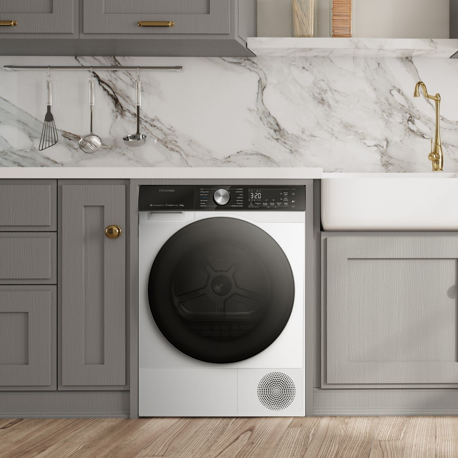 Make laundry day effortless with the Hisense 5S Series DH5S102BW Heat Pump Tumble Dryer. Its extra-large 10kg drum capacity is perfect for large families, allowing you to dry bulky loads or bedding in a single go. Using energy-efficient heat pump technology, it recycles hot air to dry clothes gently at lower temperatures, protecting your fabrics while keeping running costs low.