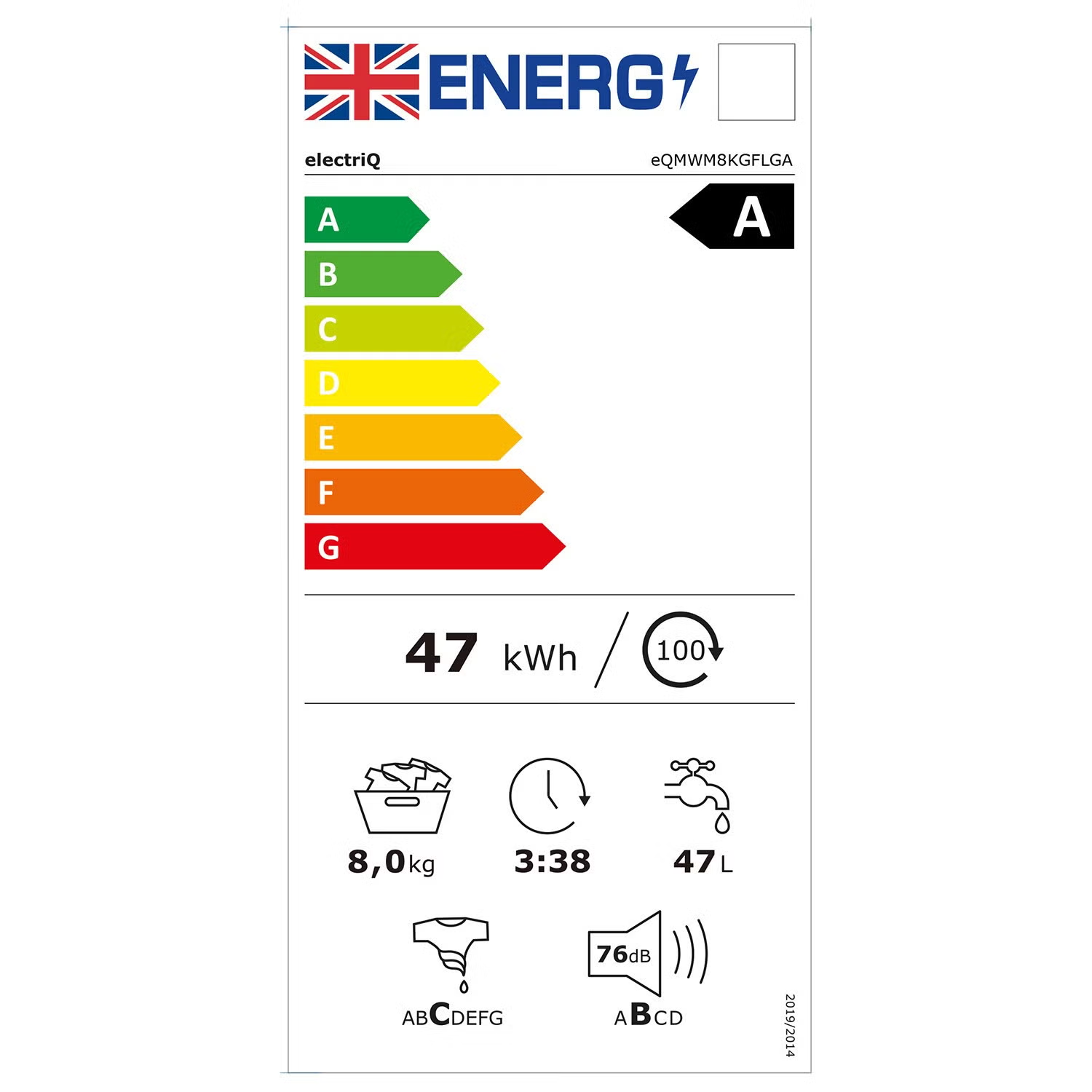 This washing machine is A class energy rated, which means it helps to save energy usage, money on your bills and protects the environment. The rating is in compliance with the New Energy Label and compared with the G class.