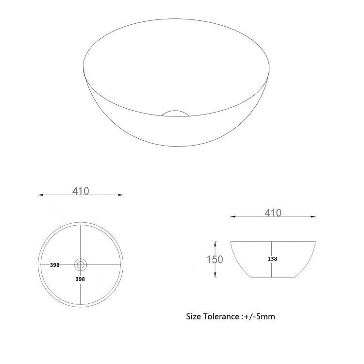 - Overall dimensions: H150 x W398 x D410 mm
