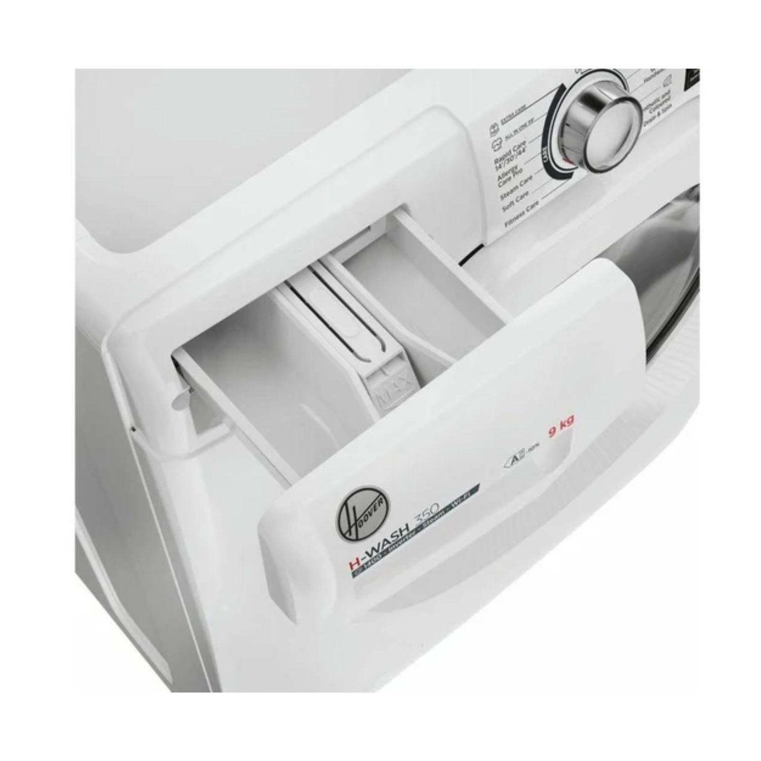 Make laundry simple and save time with the Hoover H3WPS486TAM6-80 H-Wash 350 washing machine. Its large 9kg drum capacity is perfect for family loads, meaning fewer washes for you. Stay in control from anywhere using the hOn app*, or even your voice with Alexa and Google, with the smart Wi-Fi connection. Plus, get clothes clean fast with quick wash options, including a full load in under an hour, so you're always ready to go.