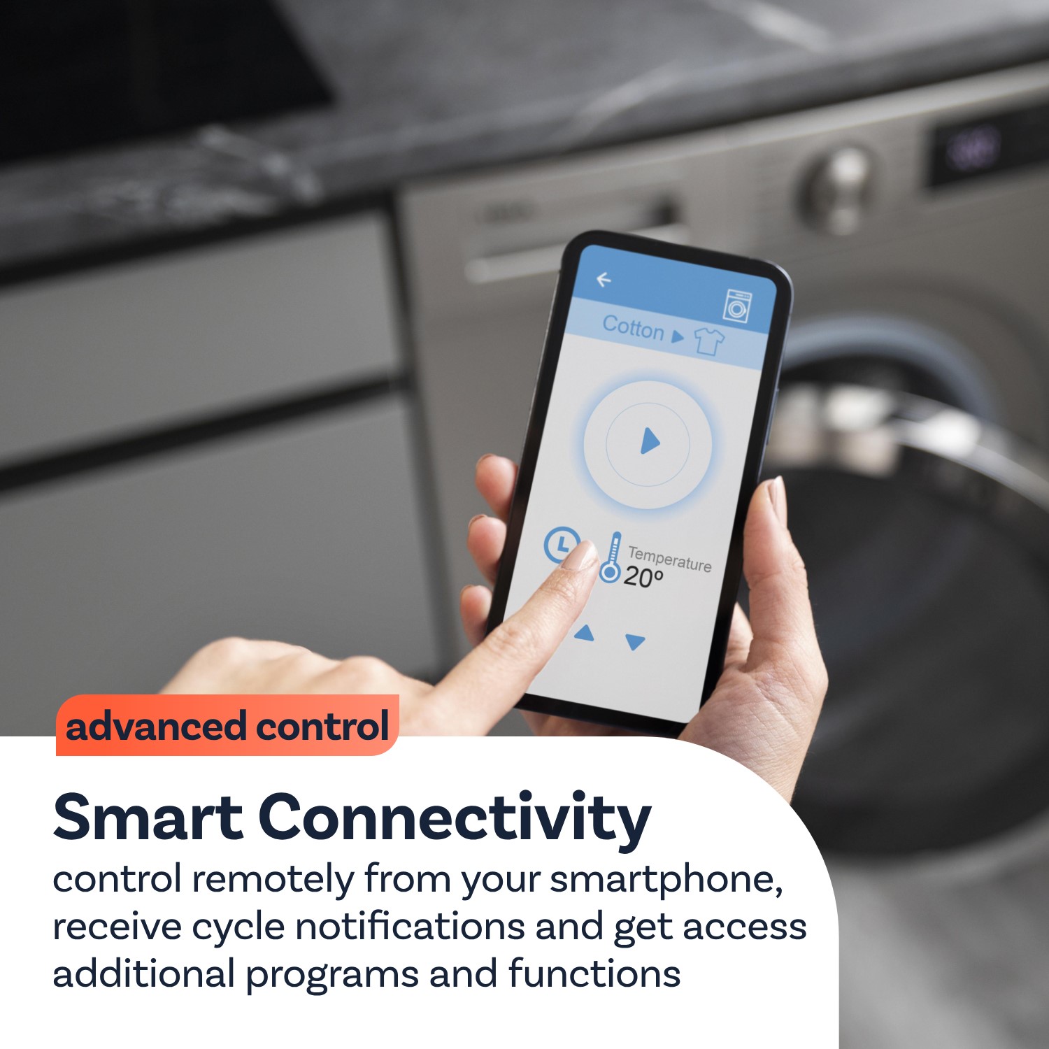 Smart Cycles function allows you to download the best cycle for your lifestyle and provides additional programs to find the best cycle to take care of your clothes.