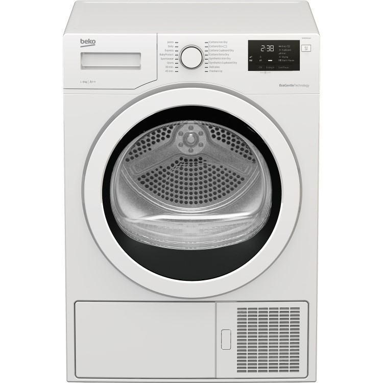Leave your laundry perfectly dry with this white tumble dryer from Beko. It has an 8kg drum, making it ideal for medium-sized households. Because this is a heat pump model, it saves you energy by recycling the hot air used during the cycle, so it’s kinder to the environment. You won’t have to wait for your clothes to get cold before they’re ready to put away either, as it automatically cools the load at the end of the programme. You can then pop everything in the cupboard right away. If you’ve been caught in a rainstorm while out walking the dog, there’s also a handy Extra Dry setting, which will leave even the bulkiest winter coats as dry as a bone.
