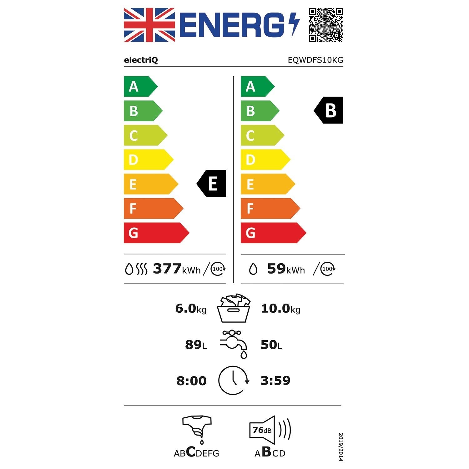 This washer dryer has a B-class* energy rating, which means it helps to save energy usage, and money on your bills and protects the environment. The rating is in compliance with the New Energy Label and compared with the G class.