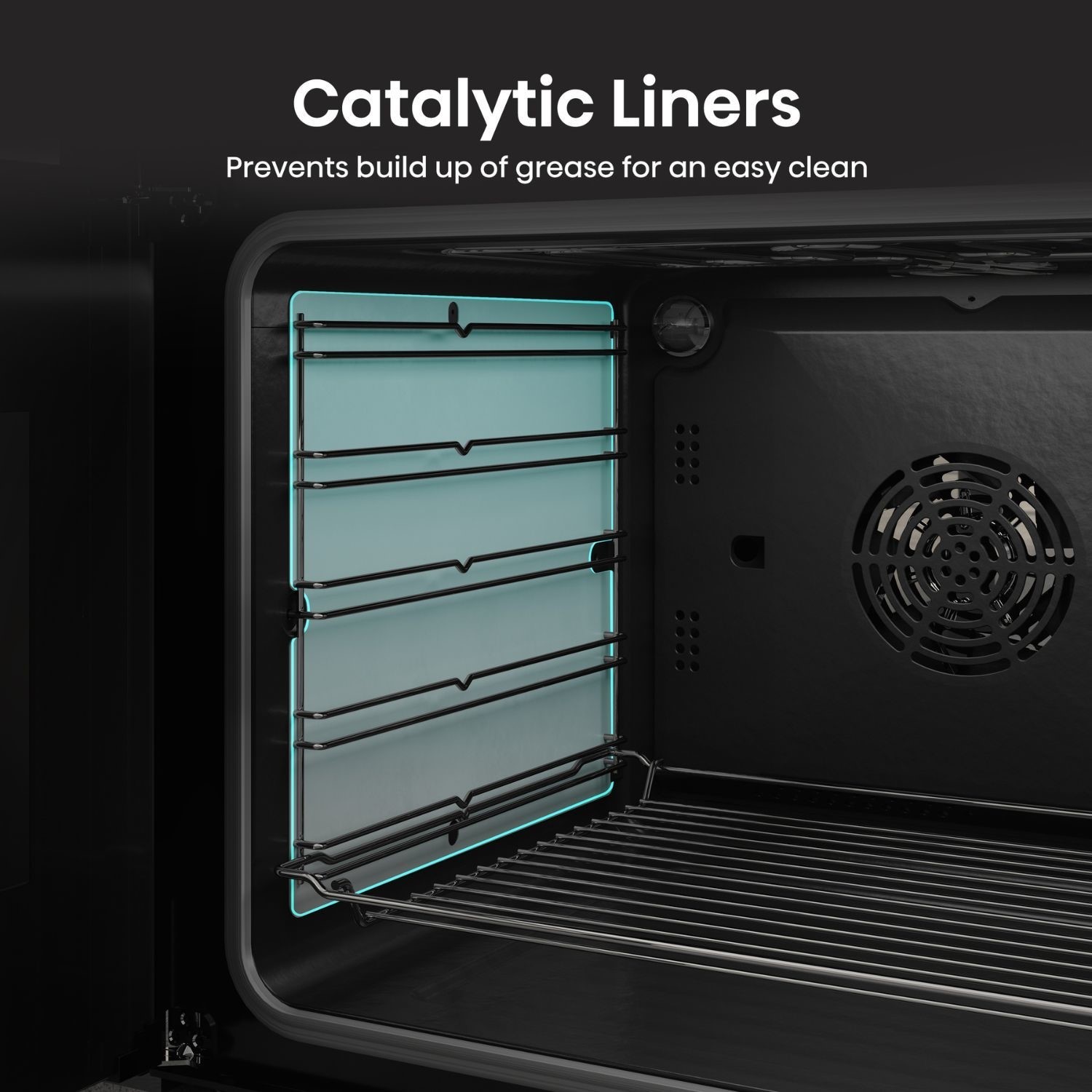 Keeping your cooker pristine is a breeze thanks to catalytic liners. These clever liners effortlessly prevent grease splashes from adhering to the cavity walls in both compartments, ensuring easy maintenance and a clear interior. Say goodbye to stubborn stains and hello to hassle-free cleaning.