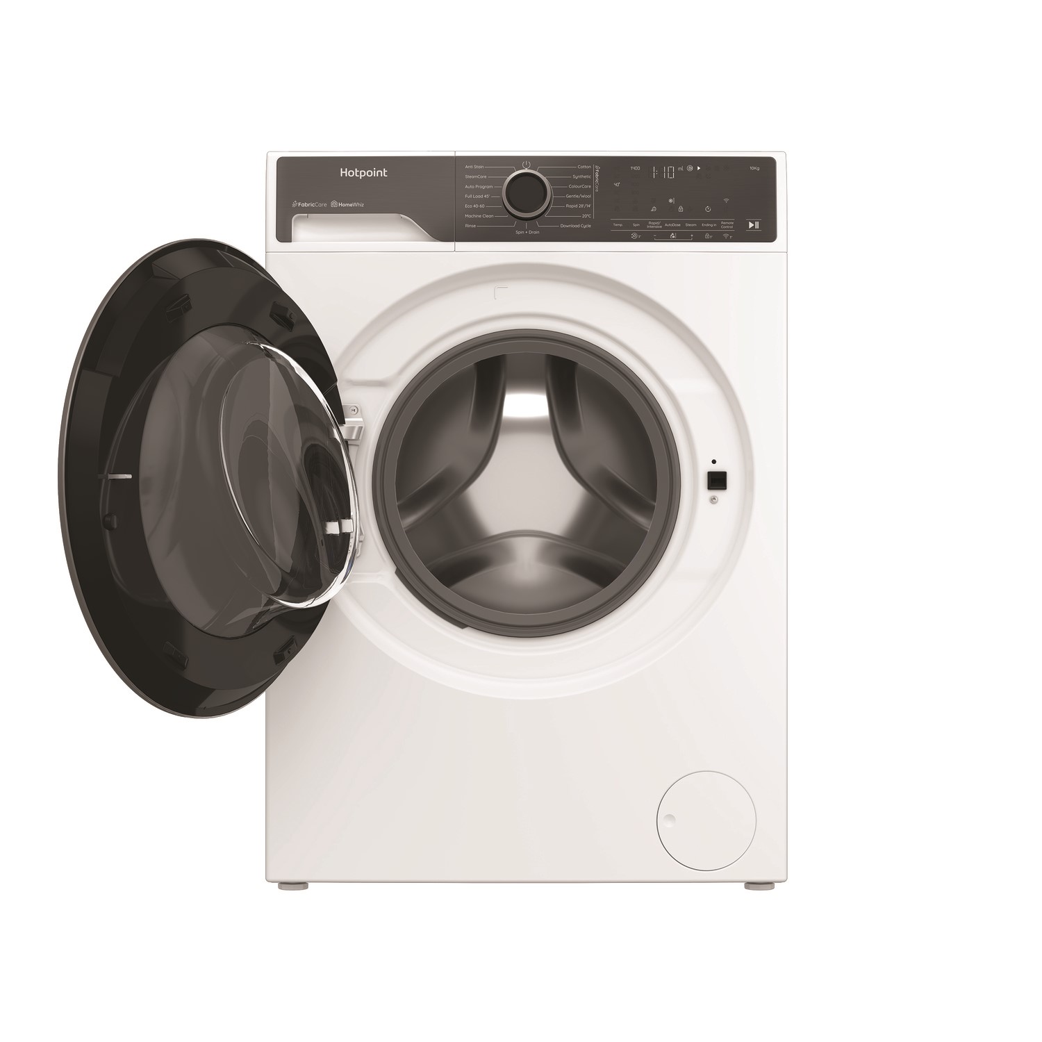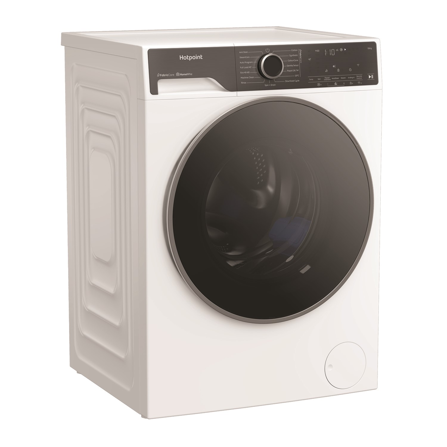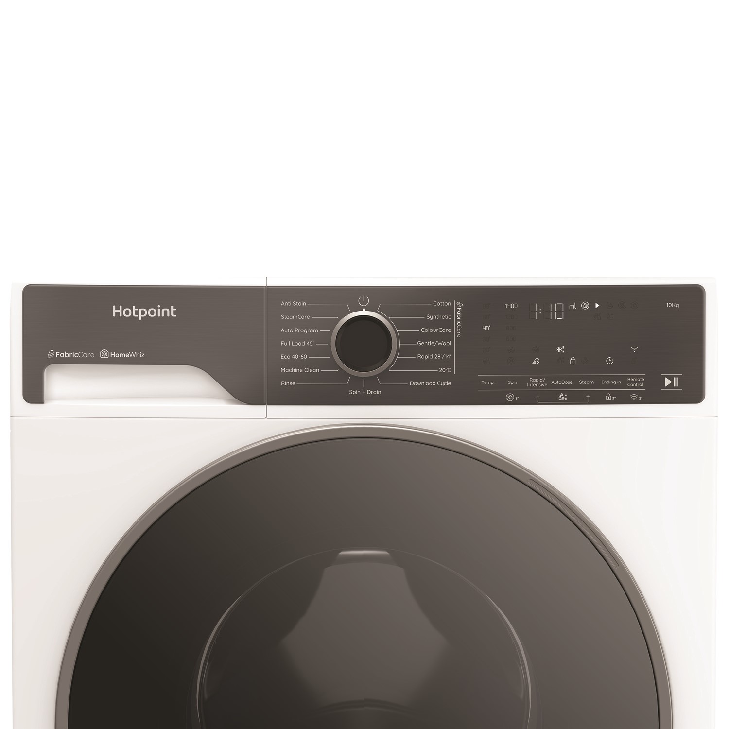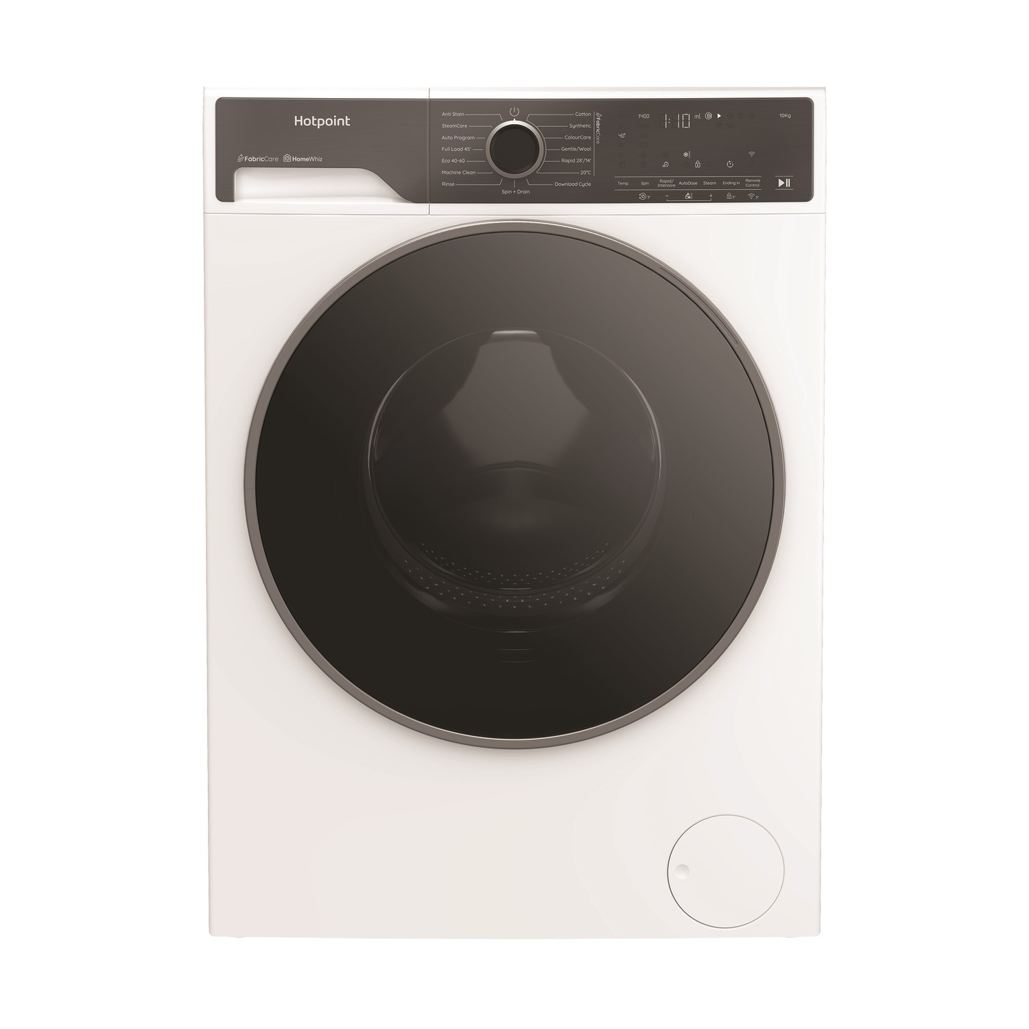 The Hotpoint Fabric Care Pro HP 105A washing machine makes laundry simple and easy. Its extra-large 10kg drum capacity means you can wash more clothes at once, cutting down on loads and saving you time. This smart washing machine connects to Wi-Fi, letting you control it from your phone with the HomeWhiz app*, even when you're out. The AutoDose system puts in just the right amount of soap for each wash, saving detergent and keeping your clothes looking their best. Plus, it's A-rated for energy, saving you money on bills, and its quiet motor won't disturb your home.