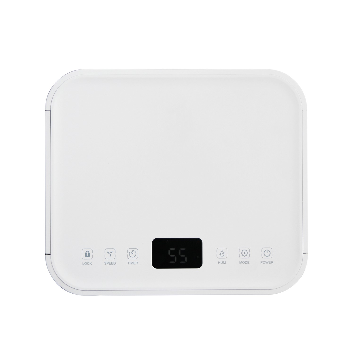 - Digital humidistat with backlight LCD display showing current room humidity