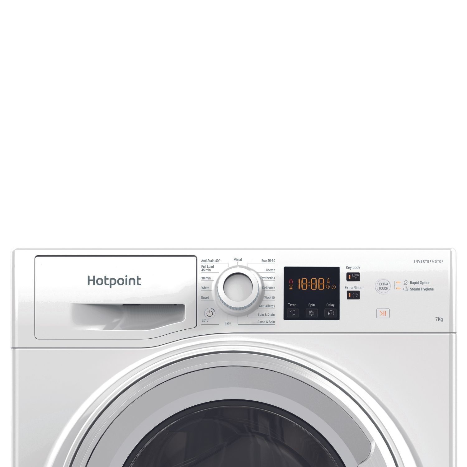 Rely on Hotpoint to eliminate common stains* from your clothes without the need for pre-treatment thanks to our dedicated Anti-stain programme. You can say goodbye to stains and pre-treatment, and leave the laundry to Hotpoint.The Full load 45' is a dedicated wash programme that allows you to wash a full load of laundry in just 45 minutes, without it compromising on the washing performance.The Rapid option allows you to reduce the wash duration by up to 50%*, so there's no waiting around for your much-needed items when time isn't on your side.