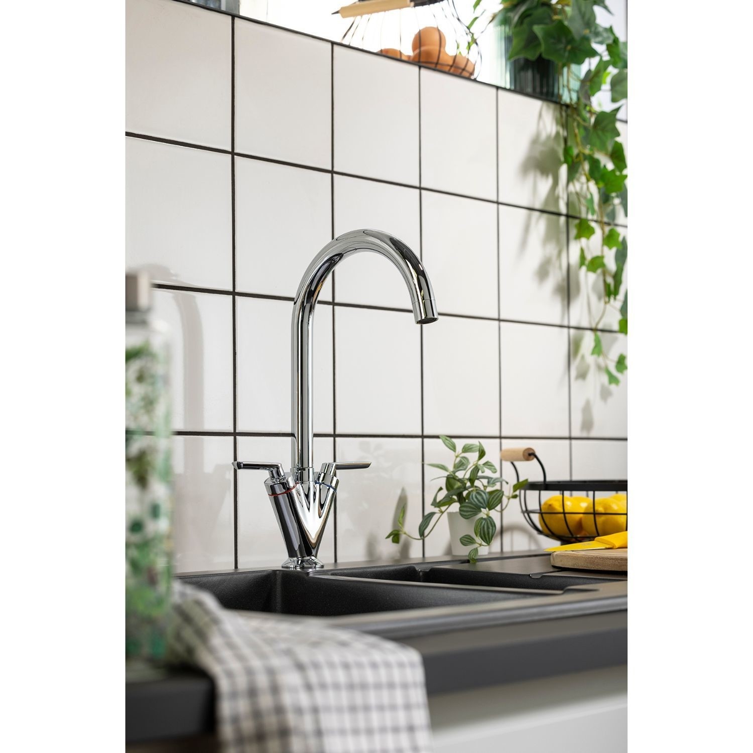 The Volo Dual Lever Mixer Tap in Chrome is a contemporary kitchen essential with an industrial edge. Featuring a sleek swan neck spout and high-shine chrome finish, it’s designed to complement modern interiors. Made from solid brass for durability, it delivers smooth, precise water flow through dual lever 1/4 turn controls. Inside, ceramic disc valves ensure long-lasting, drip-free performance. With a replaceable aerator and deck-mounted design, this tap brings both functionality and standout style to any kitchen space.