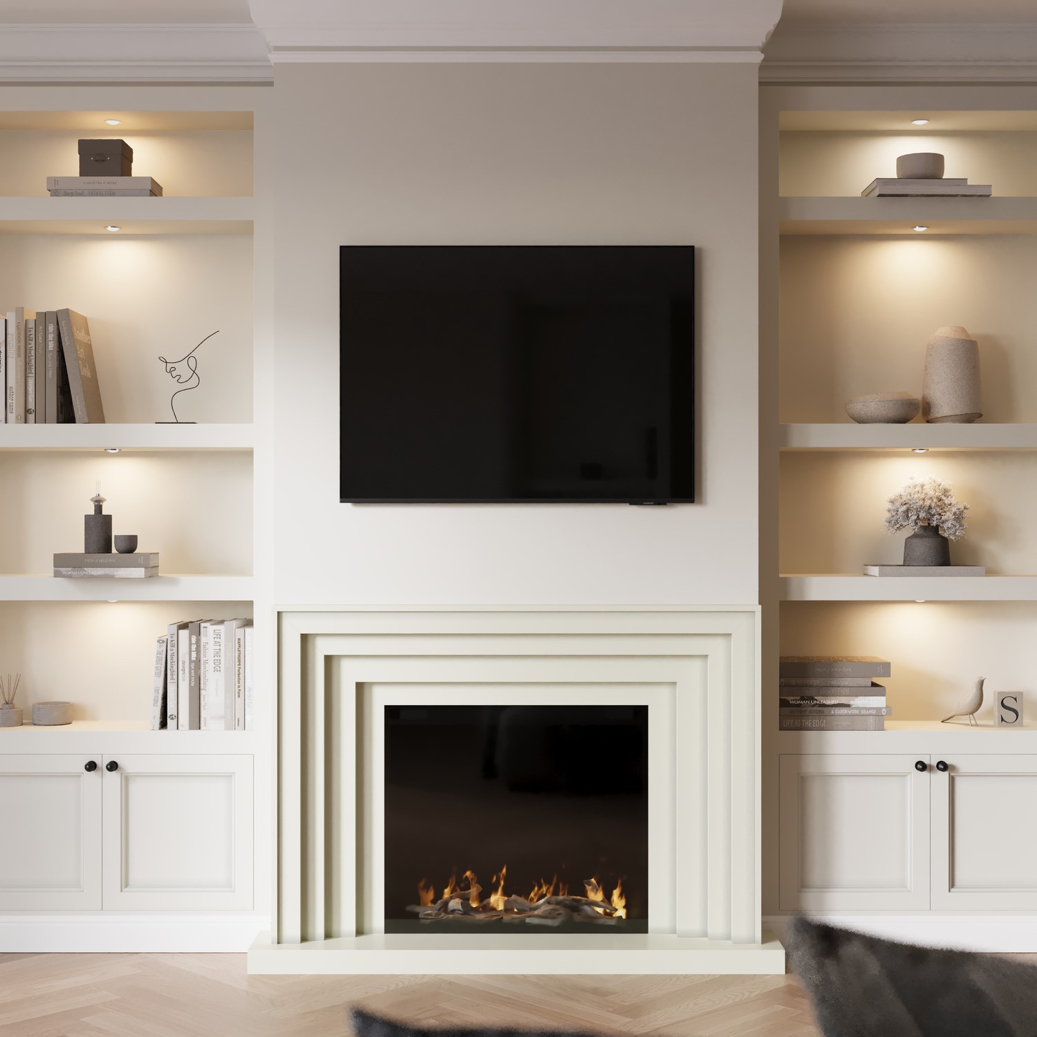Cream Stepped Surround: Adds depth and elegance to any room.