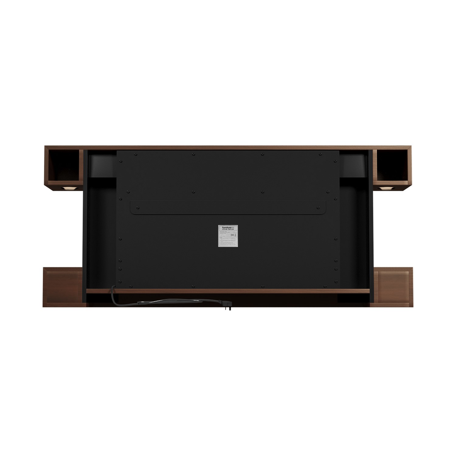 This wall-mounted fire is constructed with a walnut surround and features two integrated LED downlights and three realistic LED flame settings to add to your room’s ambience. The light-up, open front fuel bed which includes logs means you can mix and match your fuel bed's layout to suit your interior. Heat is emitted from vents underneath the top panel of the fire, allowing you to install a TV above to complete your media wall and you can even enjoy flickering flames and lights without the heat. Make changes from the comfort of your sofa with the included remote or the integrated switch manual controls on the fire. Why not use the innovative technology it has to offer and connect to your smartphone or even Alexa or Google? It's electric too, so there's no need for a chimney or flue – just plug it in and you're good to go.