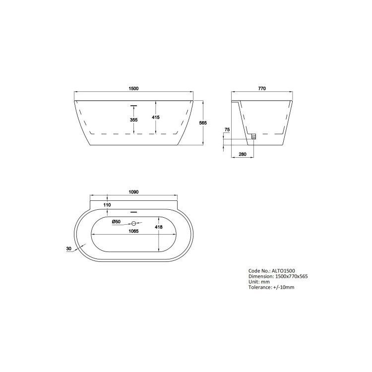 - Dimensions: L1500 x W770 x H565 mm