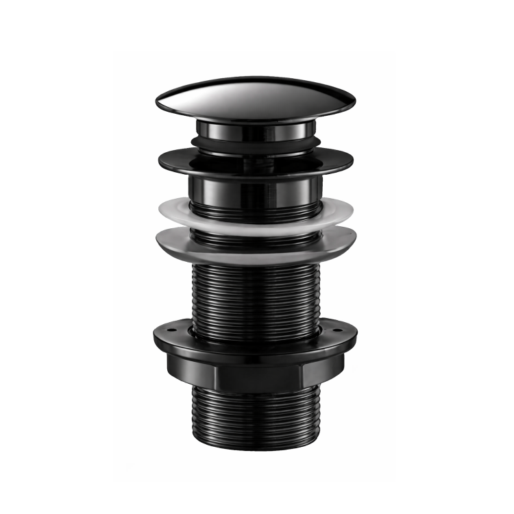 The shiny black chrome unslotted click clack basin waste is constructed from durable material with a stylish chrome finish. Waste is controlled by a simple push button mechanism for that finishing touch in your bathroom and provides excellent performance. Designed for use with basins without an overflow hole.