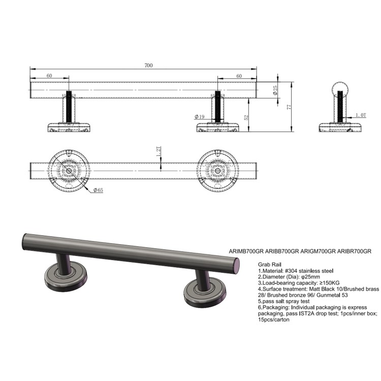 Crafted with high-quality materials, this grab rail benefits from PVD (Physical Vapour Deposition) coating technology. This advanced coating technology offers exceptional resistance to scratches, corrosion, and fading, keeping its rich colour and sleek look even in humid environments.