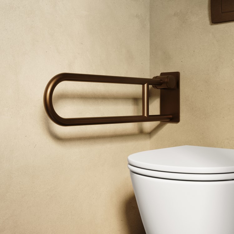 This brushed bronze bathroom grab rail offers an elegant solution for safer, more accessible bathroom use. It folds neatly out of the way when not in use. Made from durable stainless steel with a warm brushed bronze finish, it complements a wide range of fixtures and accessories for a cohesive look. Whether you're upgrading your family bathroom or planning for future accessibility, this folding grab bar delivers practicality and style in equal measure.