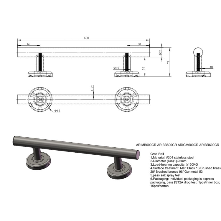 Crafted with high-quality materials, this grab rail benefits from PVD (Physical Vapour Deposition) coating technology. This advanced coating technology offers exceptional resistance to scratches, corrosion, and fading, keeping its rich colour and sleek look even in humid environments.