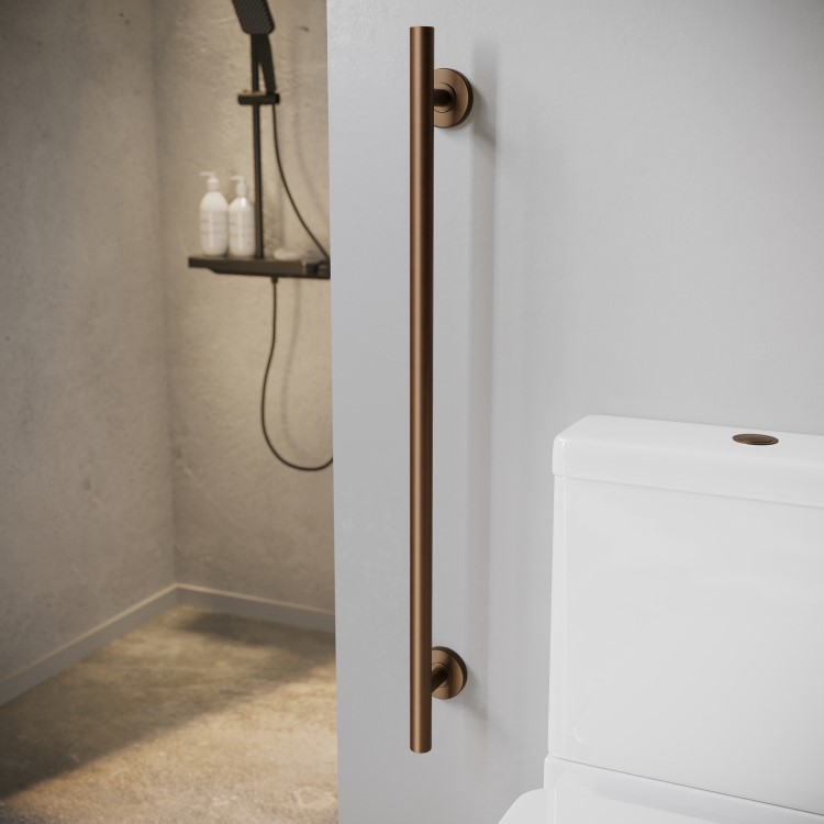Add practicality and peace of mind to your bathroom with this brushed bronze grab rail. Whether used as a toilet grab bar, shower grab rail, or bath support, it enhances accessibility and stability in key areas of your space—suitable for installation in both wet and dry environments thanks to its water-resistant construction. This grab rail can be installed vertical or horizontal for added versatility.