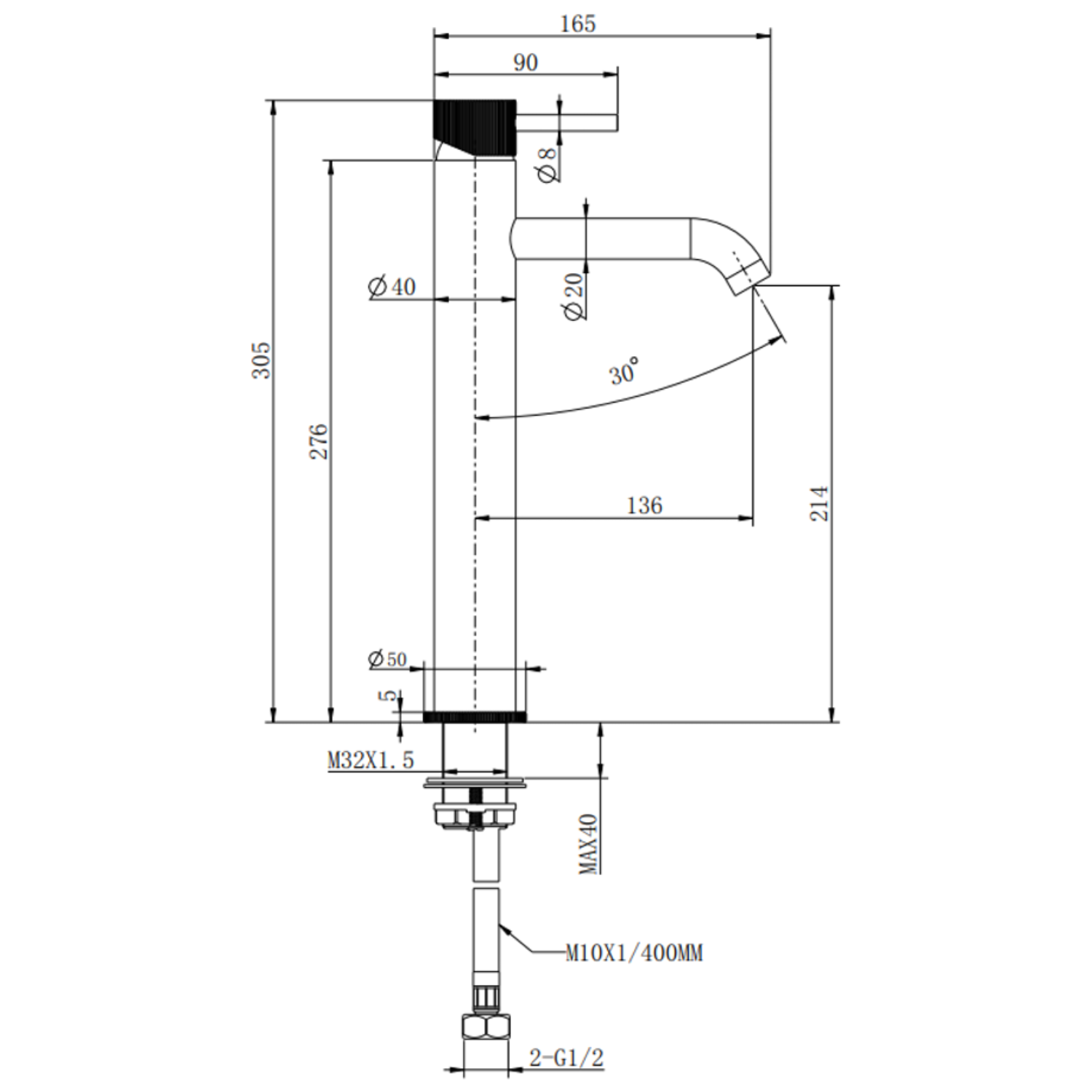 Tall Basin Mixer: This tall basin mixer is designed for deck-mounted installation, to pair with countertop basins. Use the lever to mix the hot and cold water for your desired temperature.