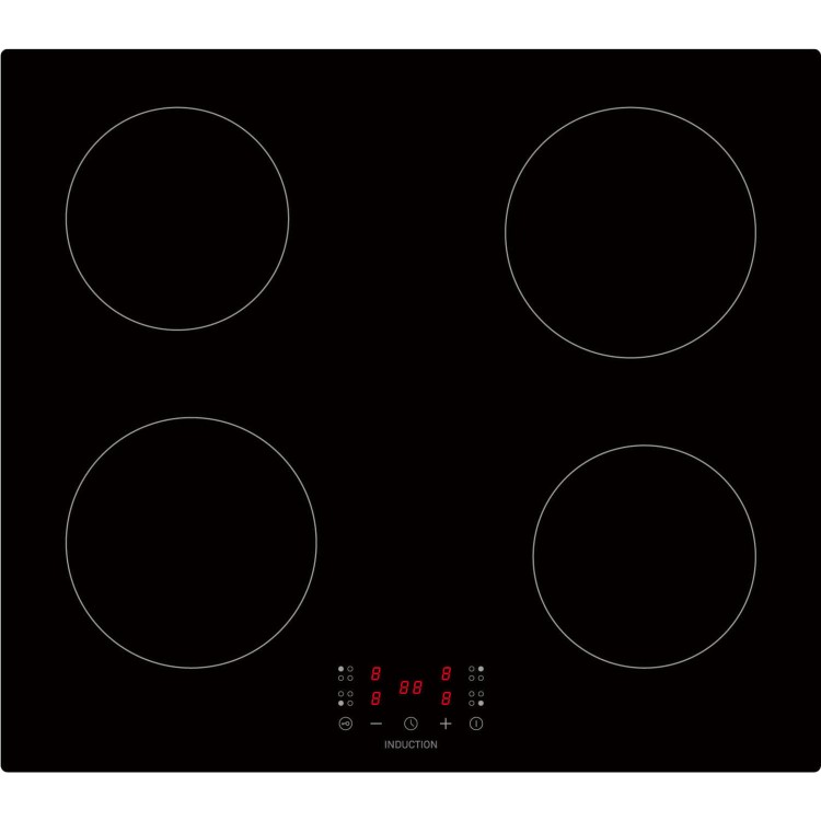 This 4-zone induction hob features a smooth satin glass finish, perfect for any kitchen. With 4 induction cooking zones, each with 9 power levels, you can adapt the heat of each zone easily with the touch controls located at the front of the hob.