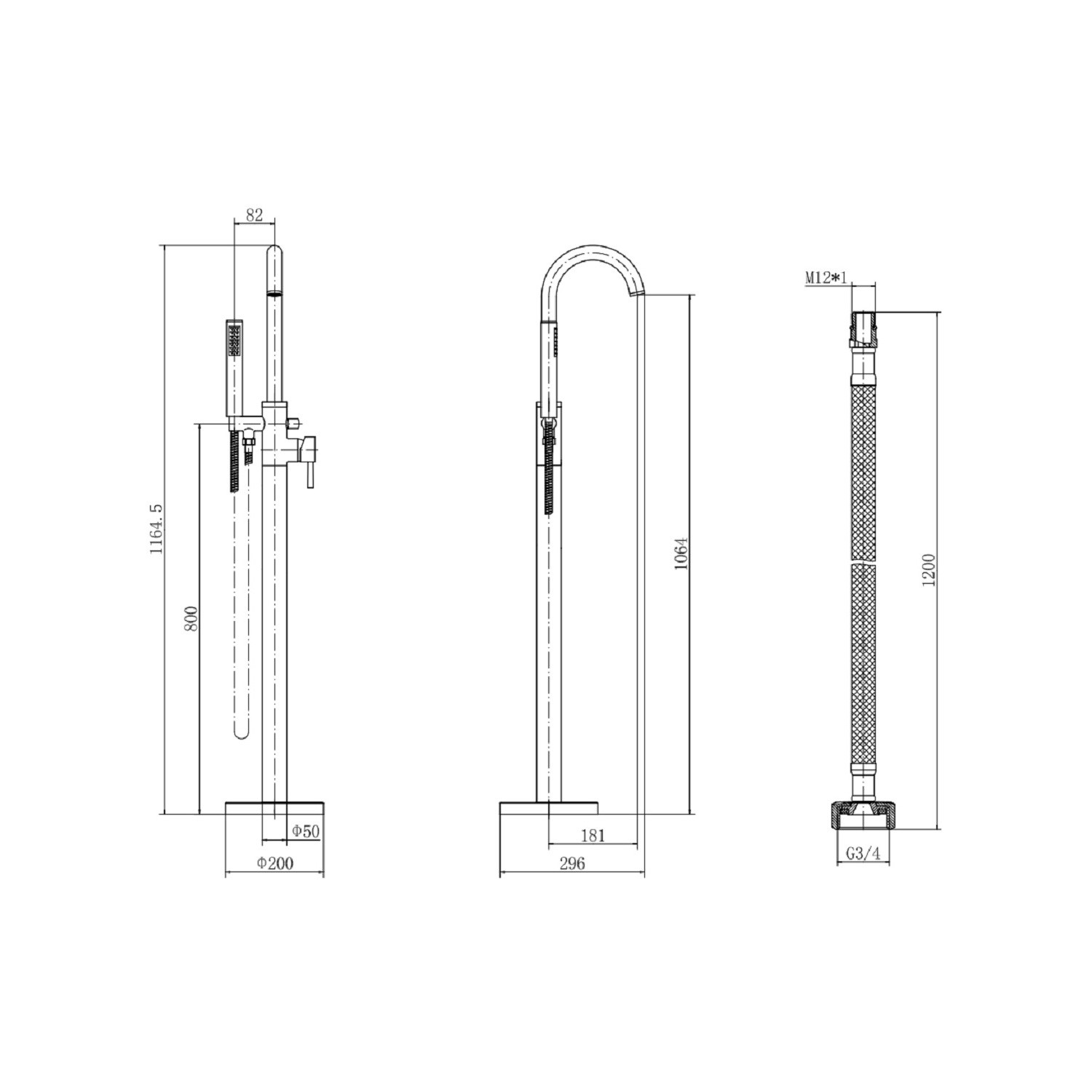 Freestanding Bath Shower Mixer Tap: Offers the convenience of a bath filler and a shower handset in one sleek, freestanding design.